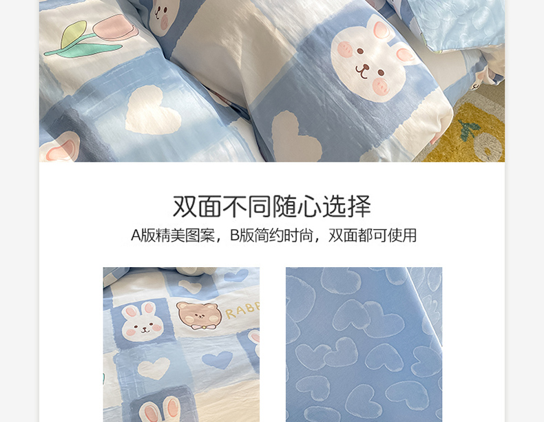 (总)琪格格纺织 2025新款全棉纯棉13372小清新四件套,爱心兔,白兔与熊,彩霞,美郁-紫,萌心兔,皮皮兔,苏珊花园,微雨,小粉兔,熊猫
