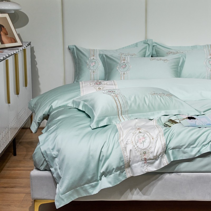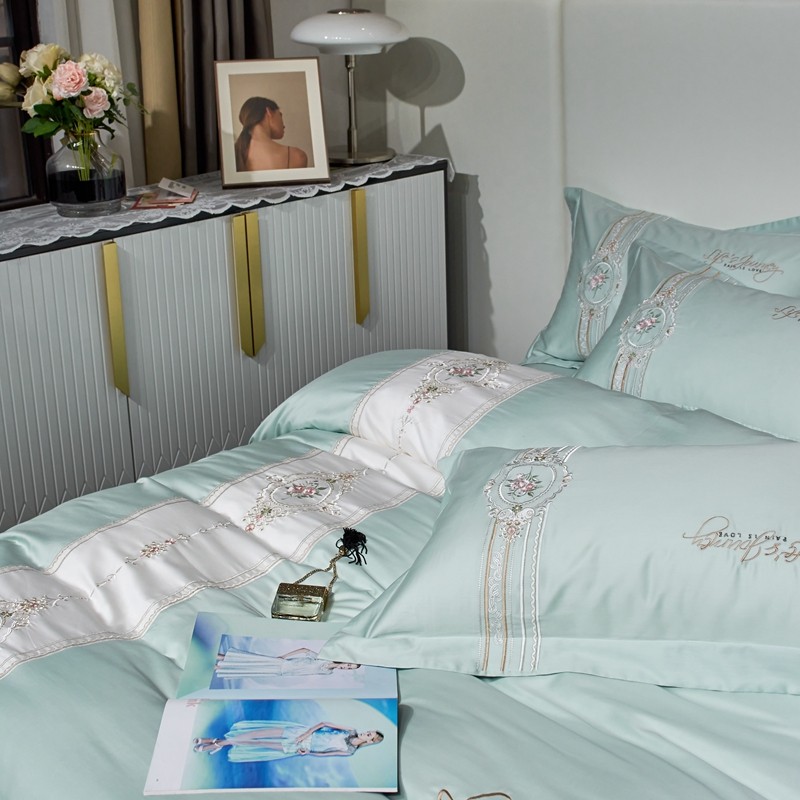 (总)星尚家纺 2024新款全消光230g牛奶绒刺绣保暖四件套-花漾,晨雾绿,豆沙粉,樱花粉