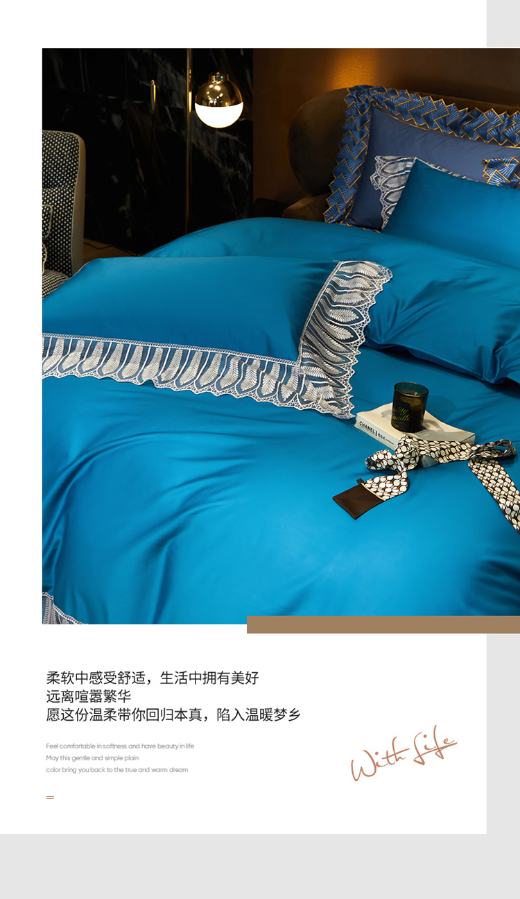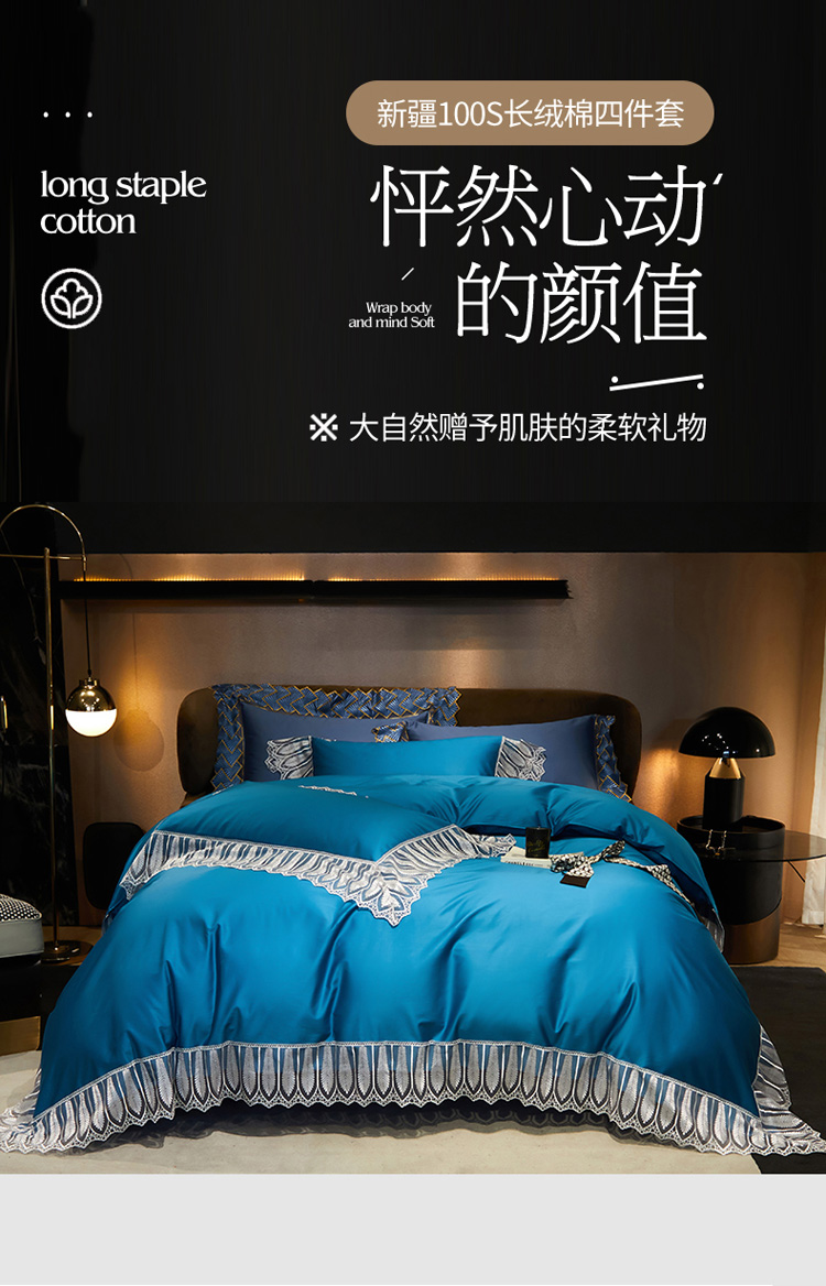 2023名品优仓直播爆款奥黛丽系列100s长绒棉四件套 奥黛丽 子午蓝