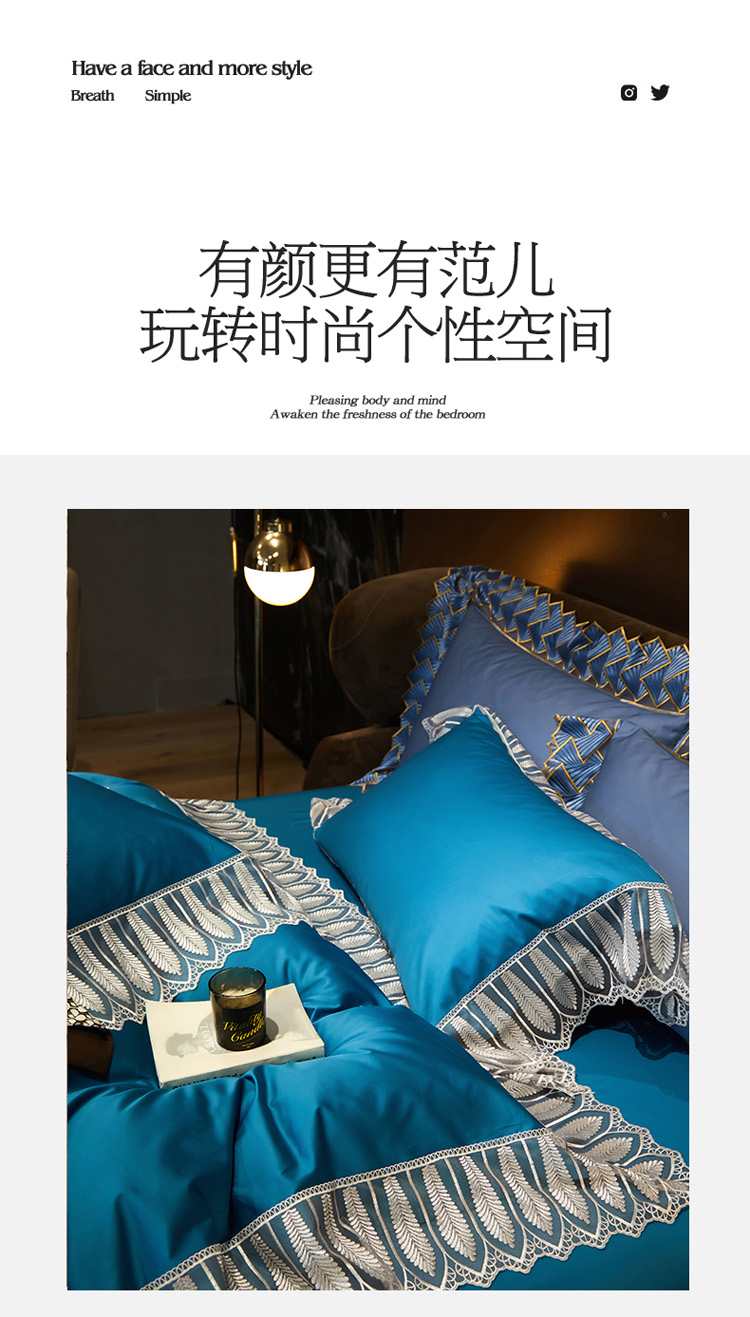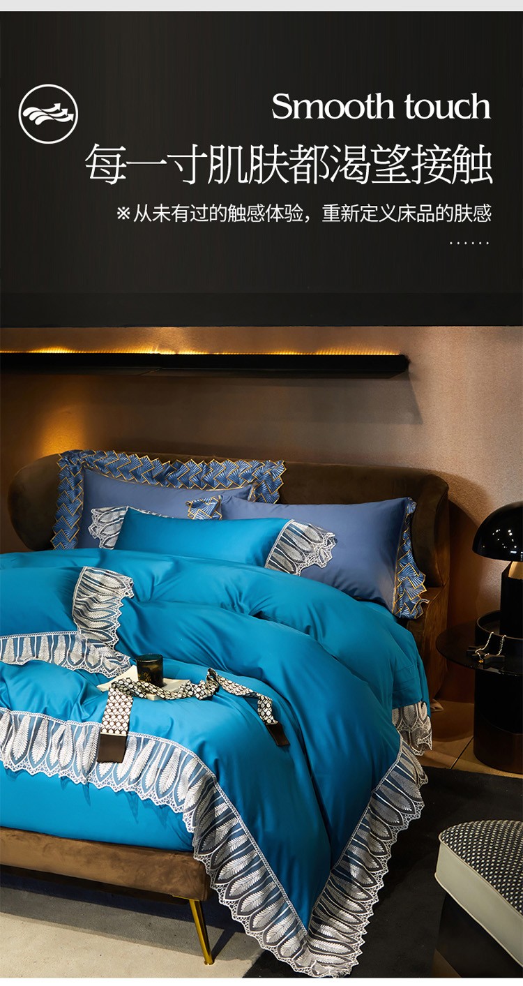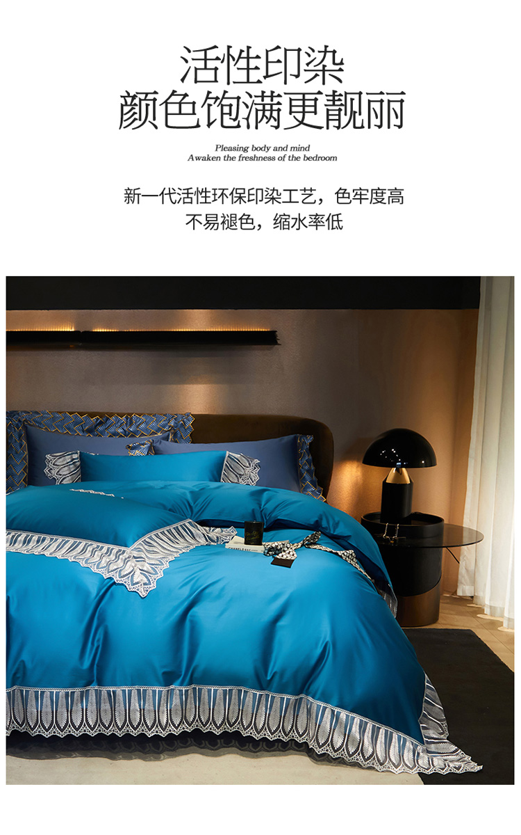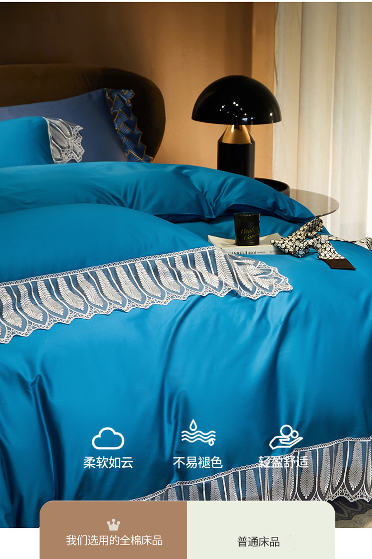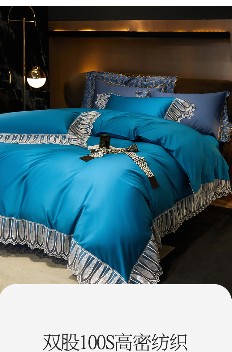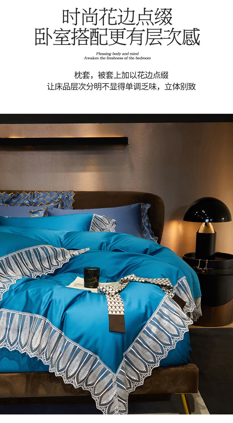 商品名称:2023名品优仓直播爆款奥黛丽系列100s长绒棉四件套 奥黛丽 子午蓝