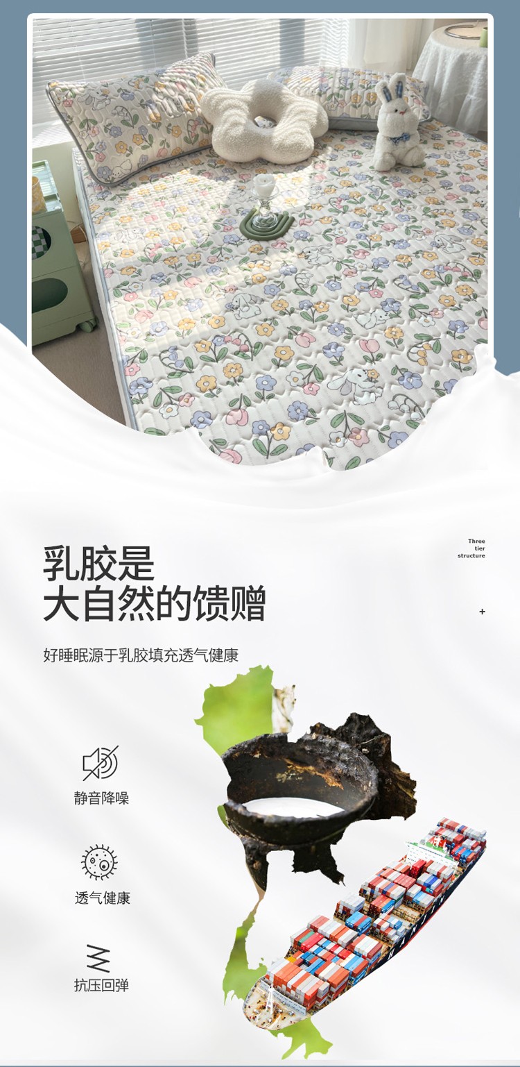 商品名称:慕尚 小清新床席款乳胶席三件套(带氨纶0.5mm) 花魅