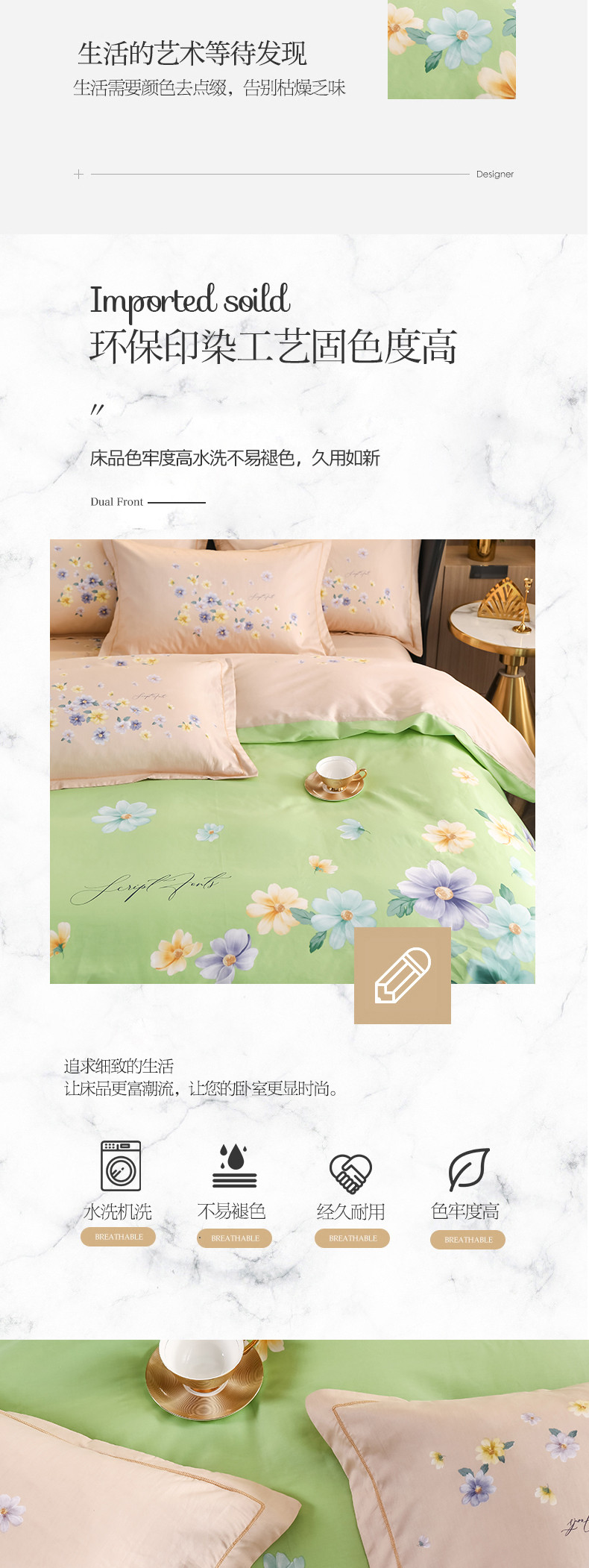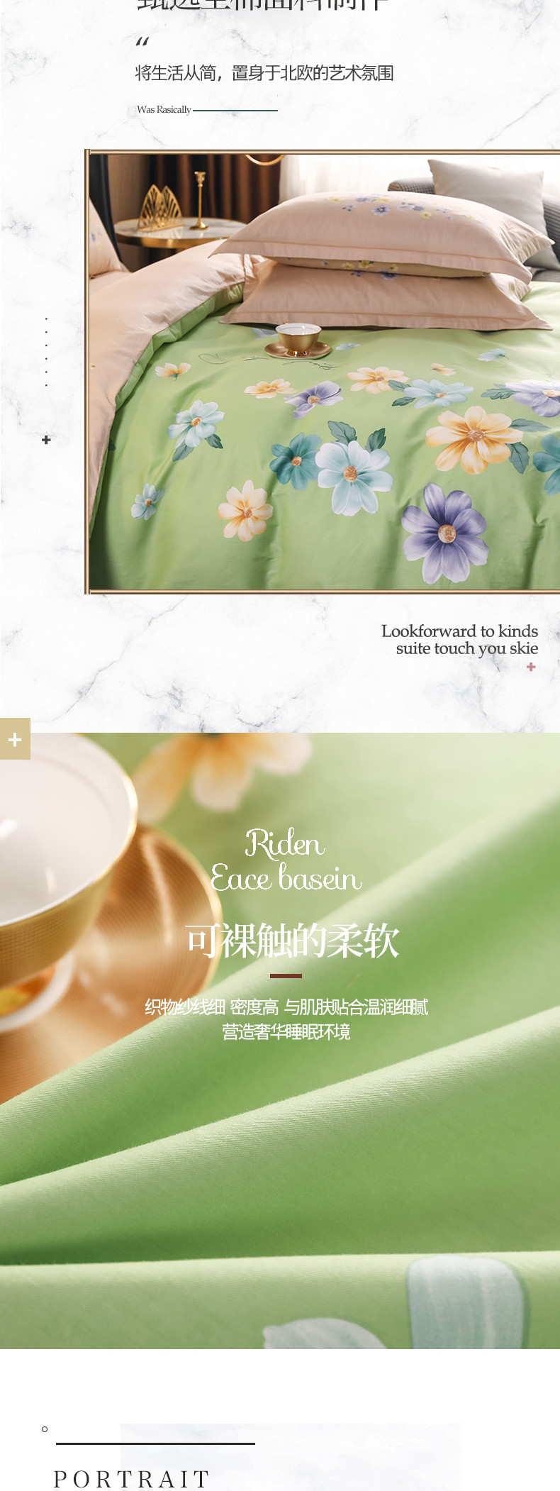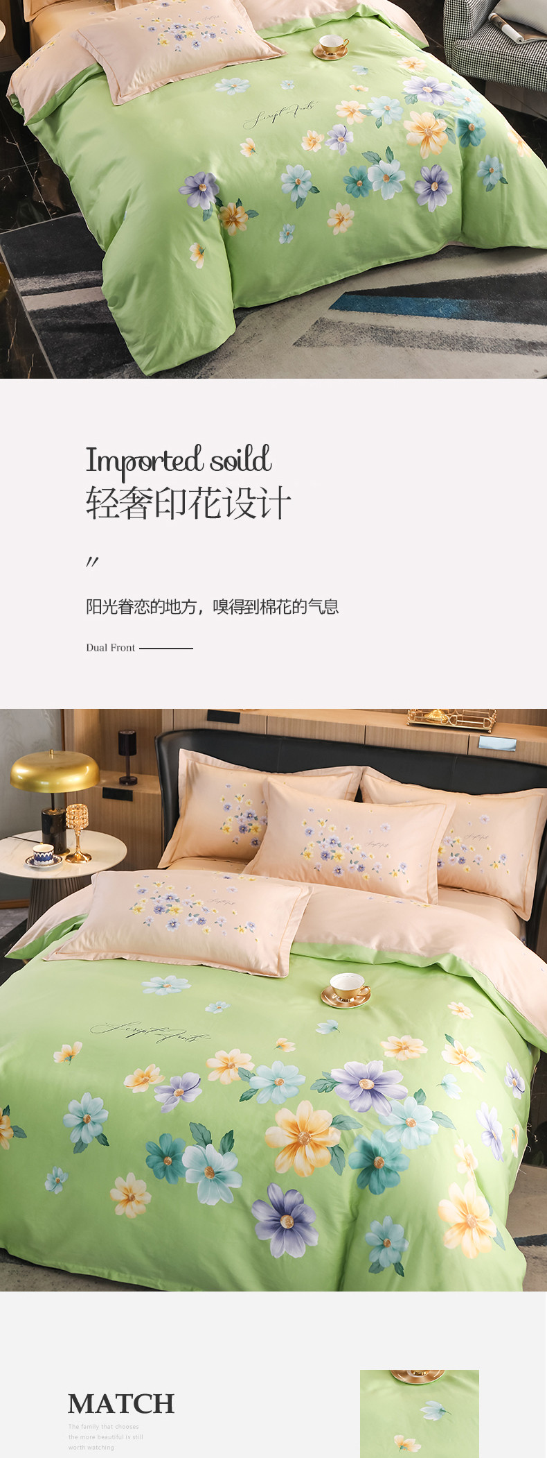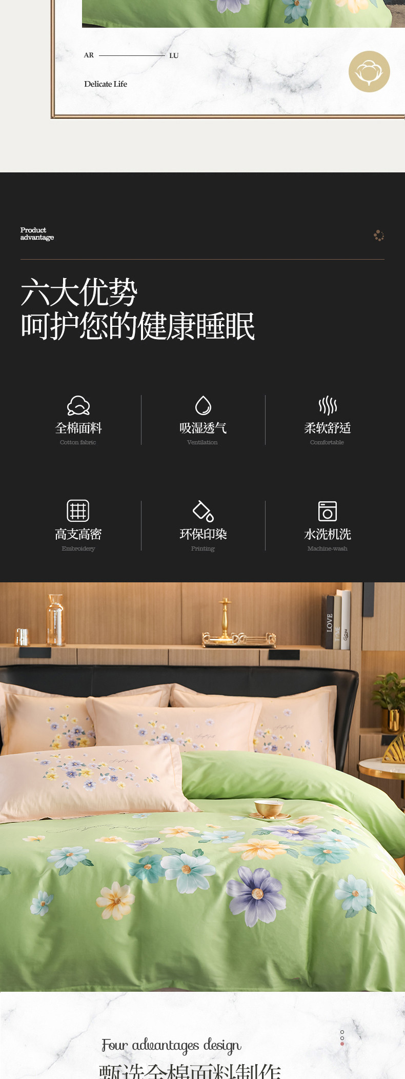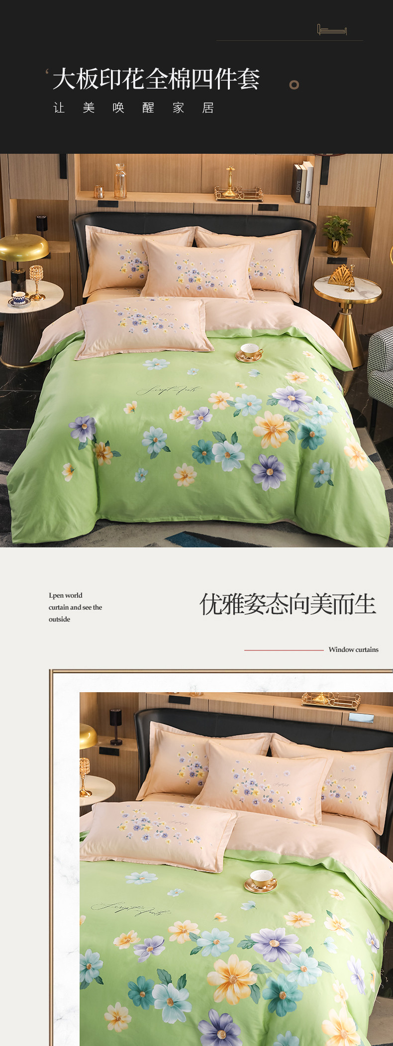 商品名称:雲归梦 2022新款全棉大版四件套 花卉花型 倾世流年-绿