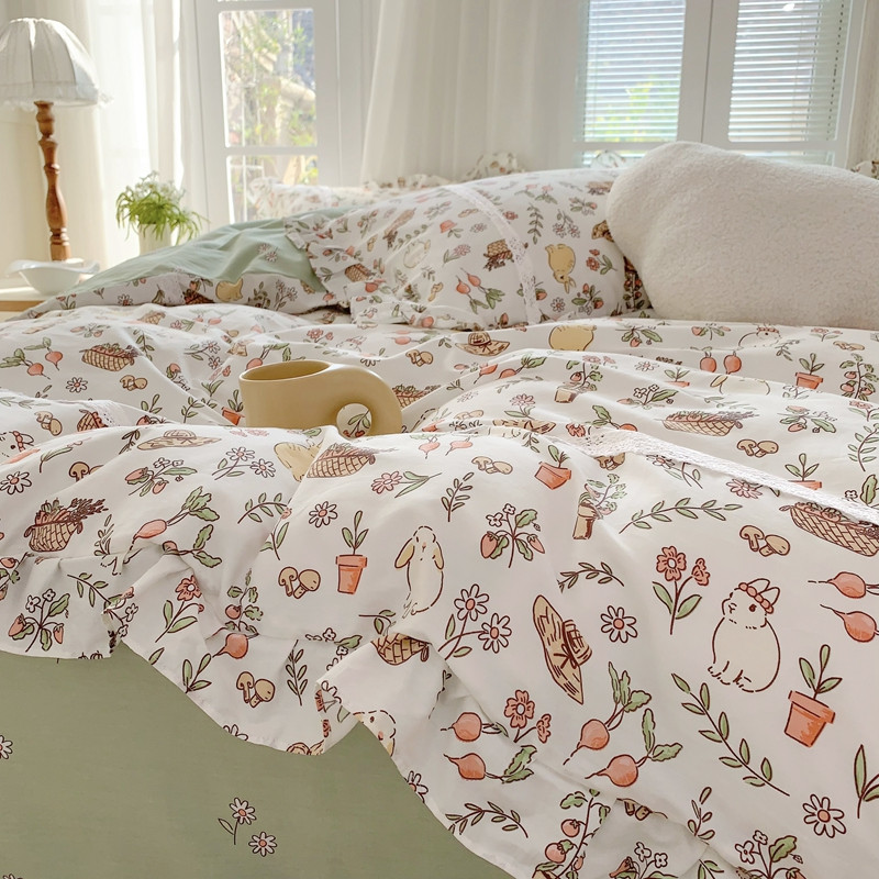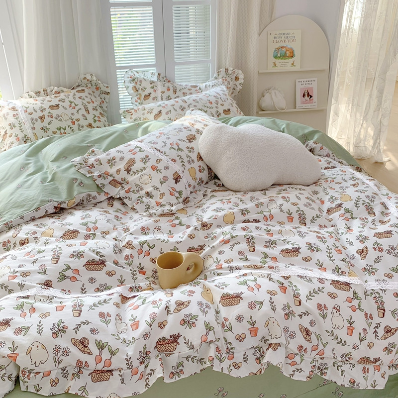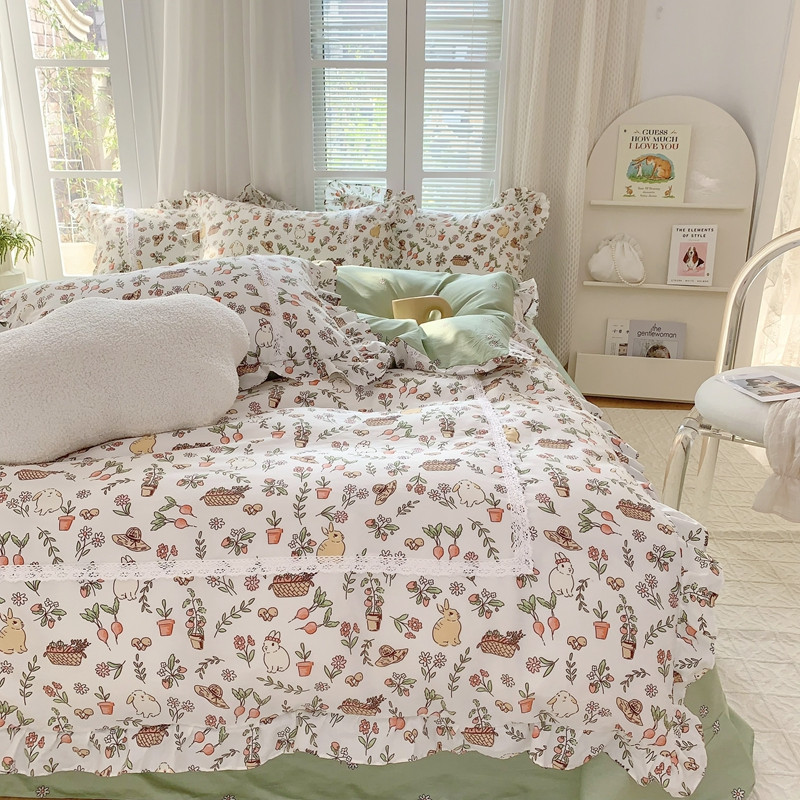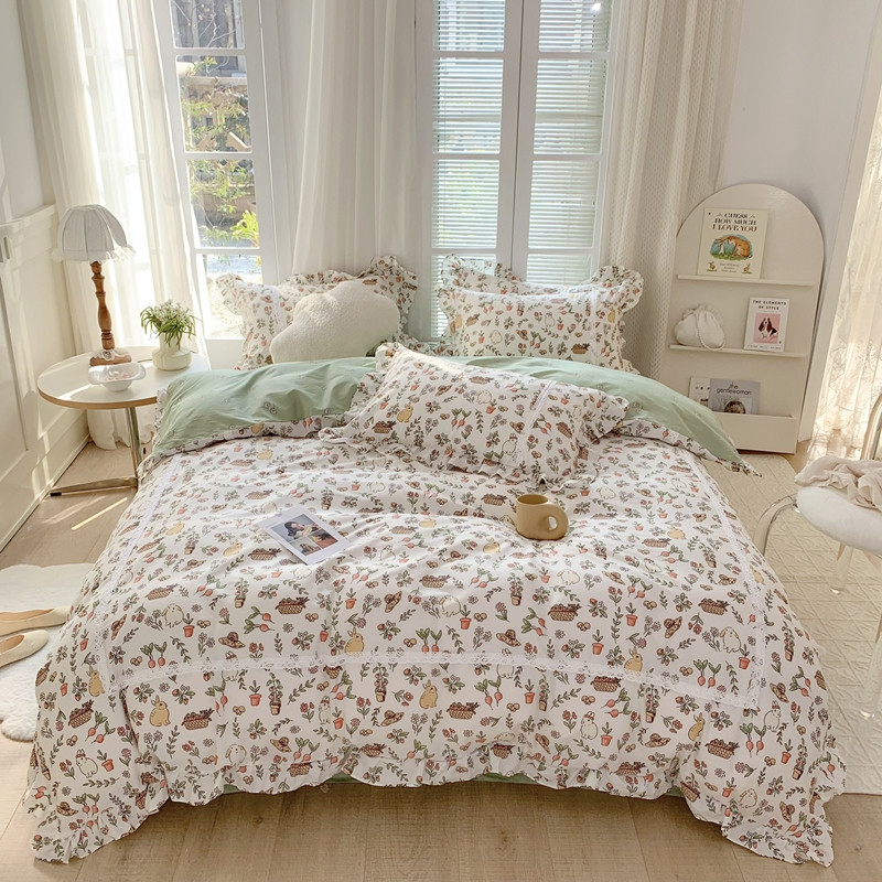 眠屿 2022新款全棉小碎花法式花边四件套 田园物语