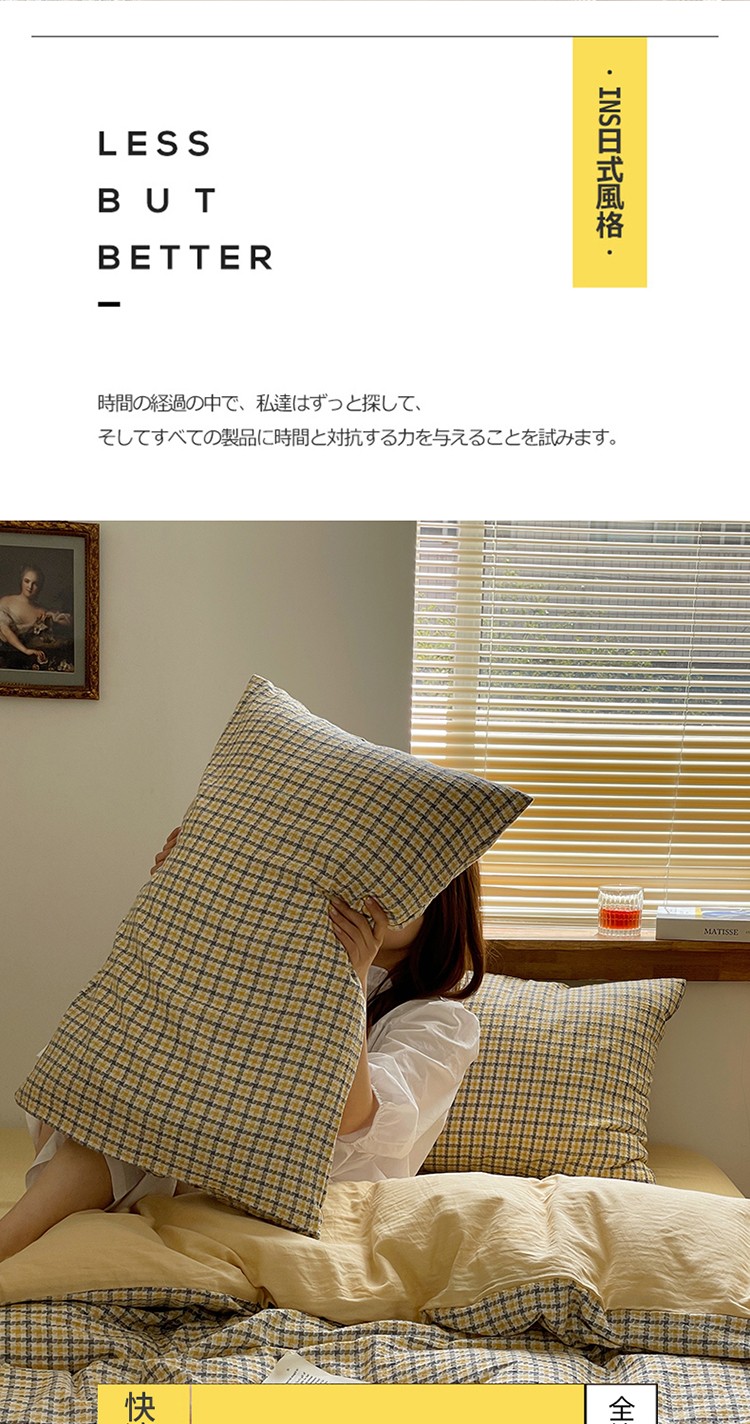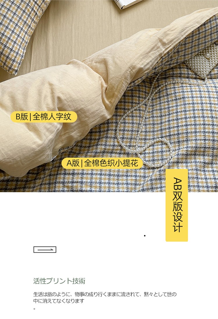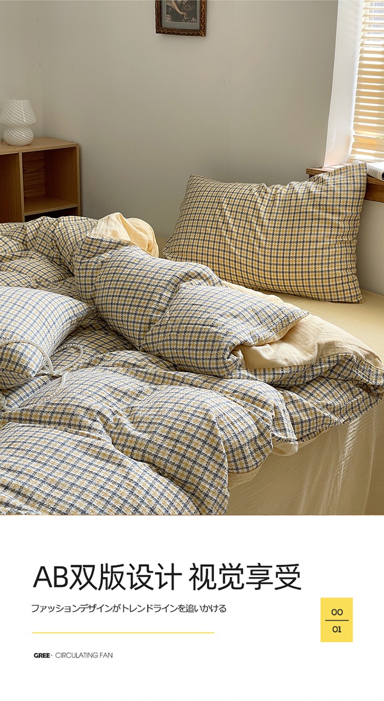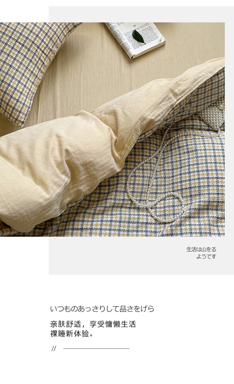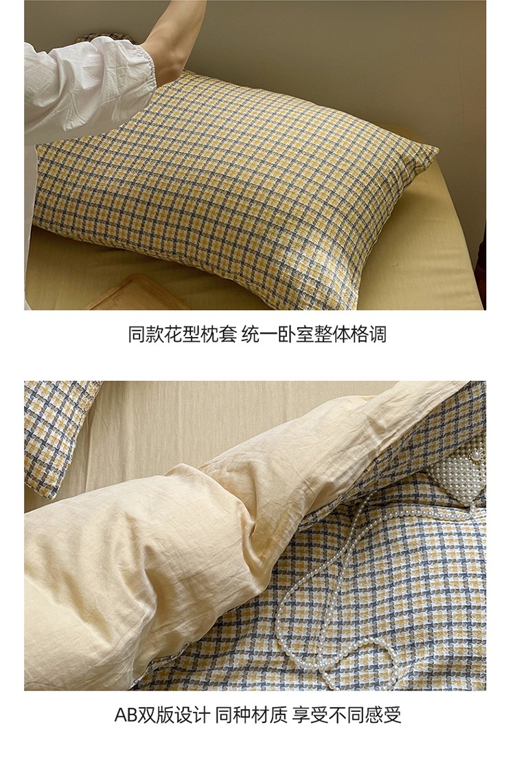 艾咪 新款全棉水洗棉色织小提花四件套/三件套 梵希-杏黄