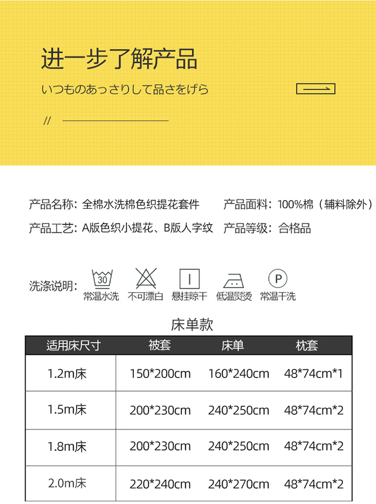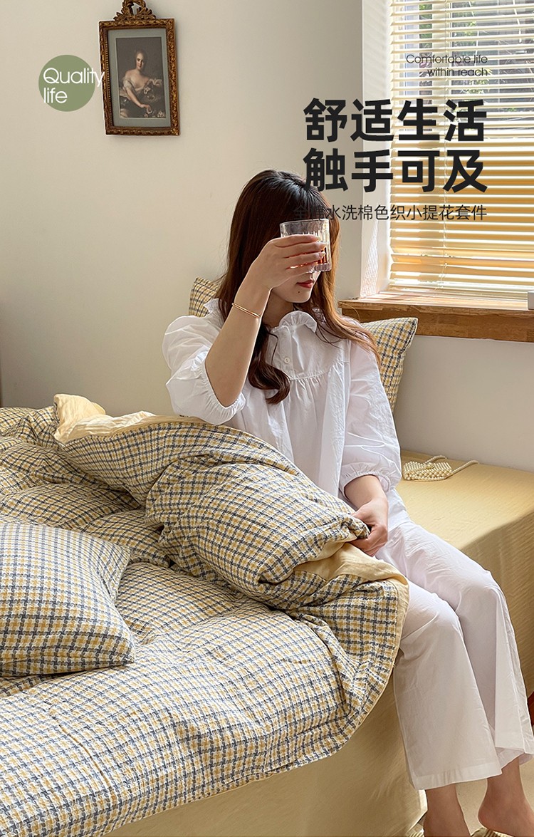 商品名称:艾咪 新款全棉水洗棉色织小提花四件套/三件套 梵希-杏黄