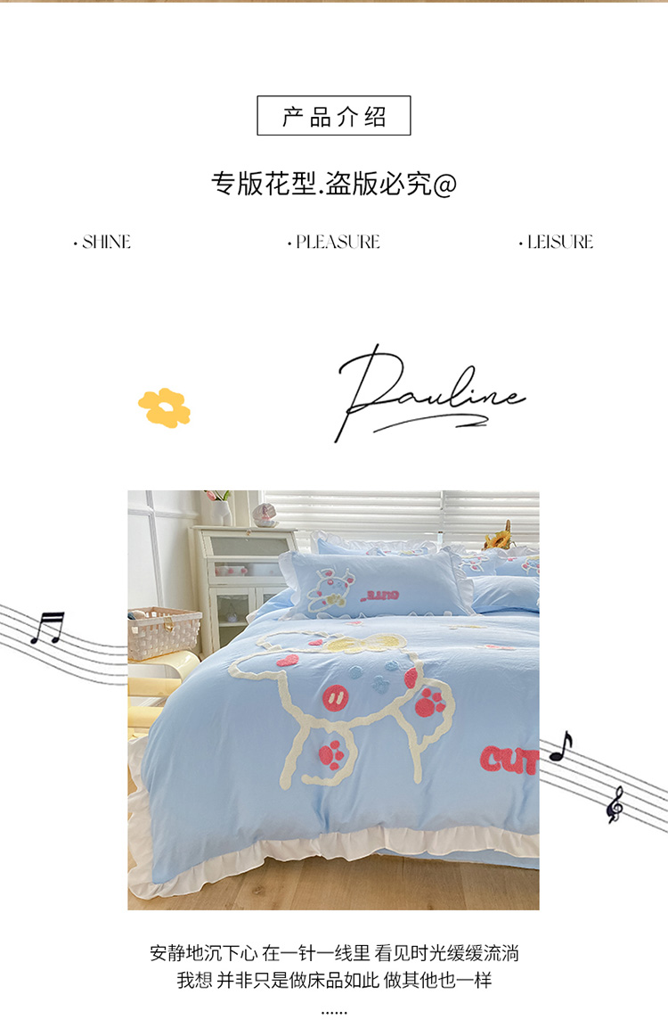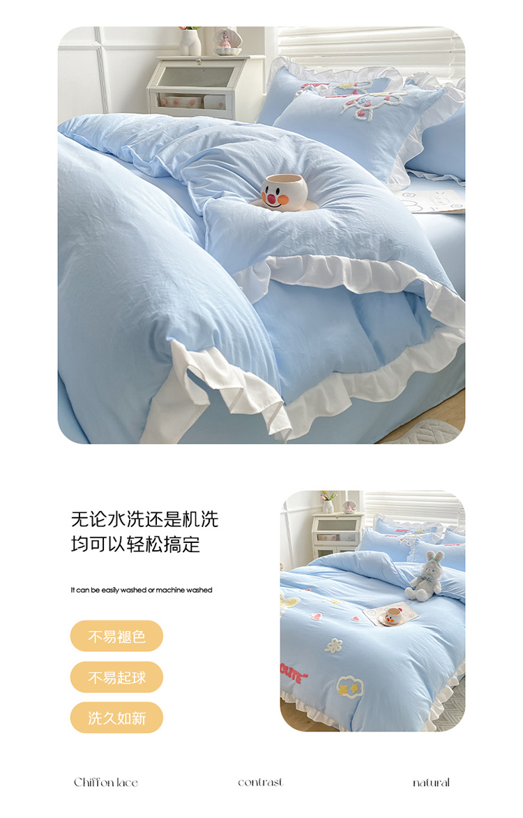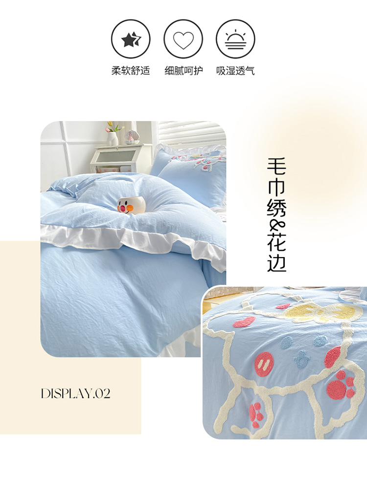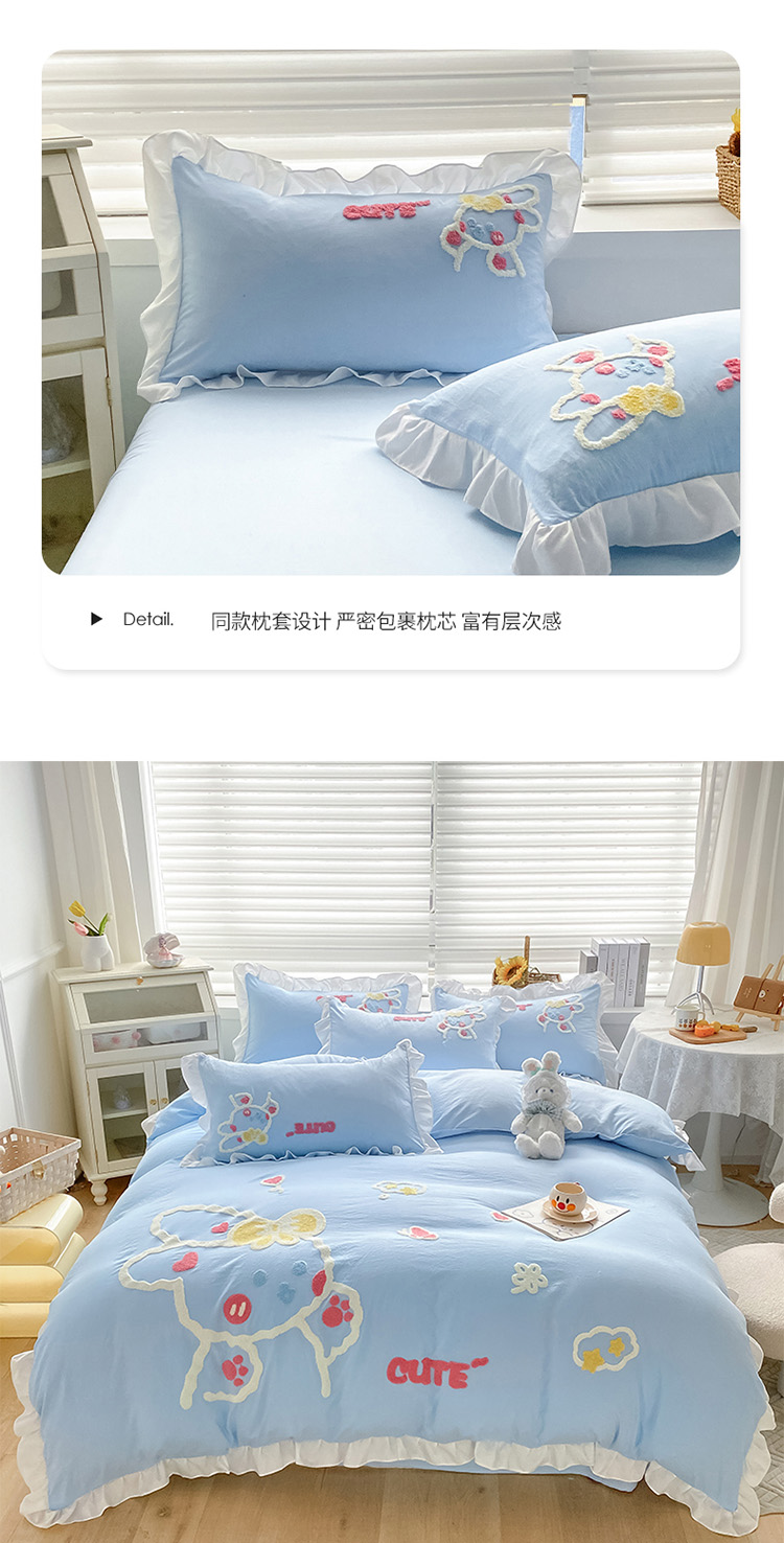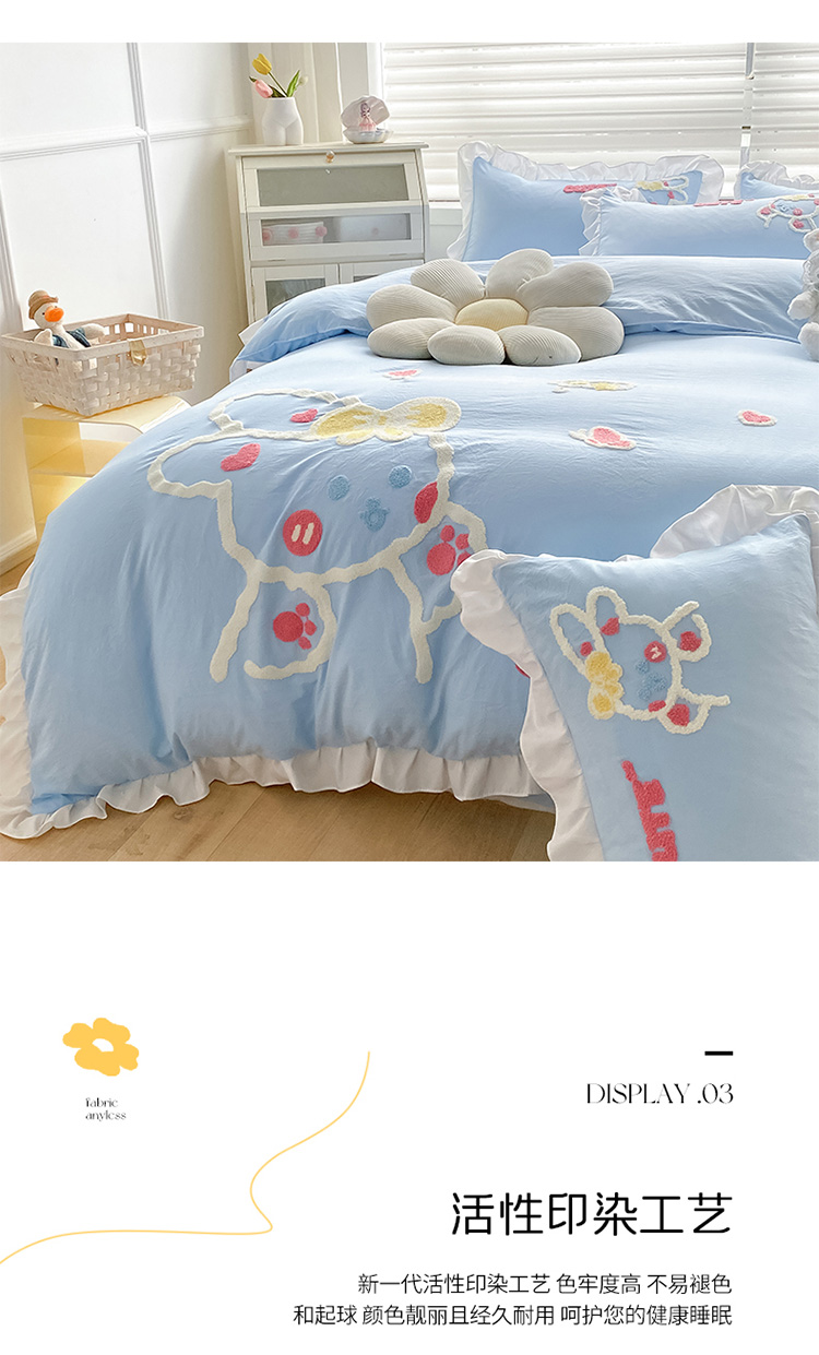 当前位置: 91家纺网 > 商品网购 > 床品套件 > 四件套 > 水洗棉四件套 > 泉欣 2024新款网红水洗棉毛巾绣韩版四件套可爱兔可爱兔-蓝