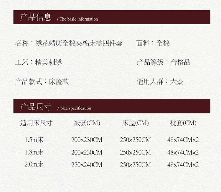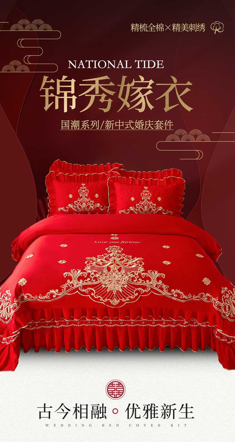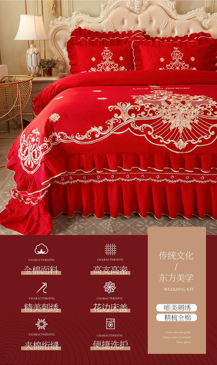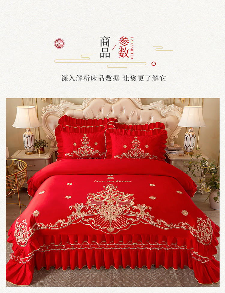商品名称:宜凡 2022新款绣花婚庆全棉夹棉床盖款四件套 锦绣东方