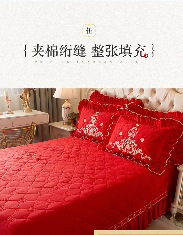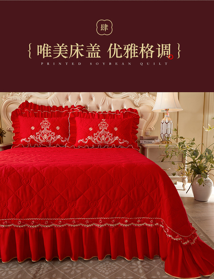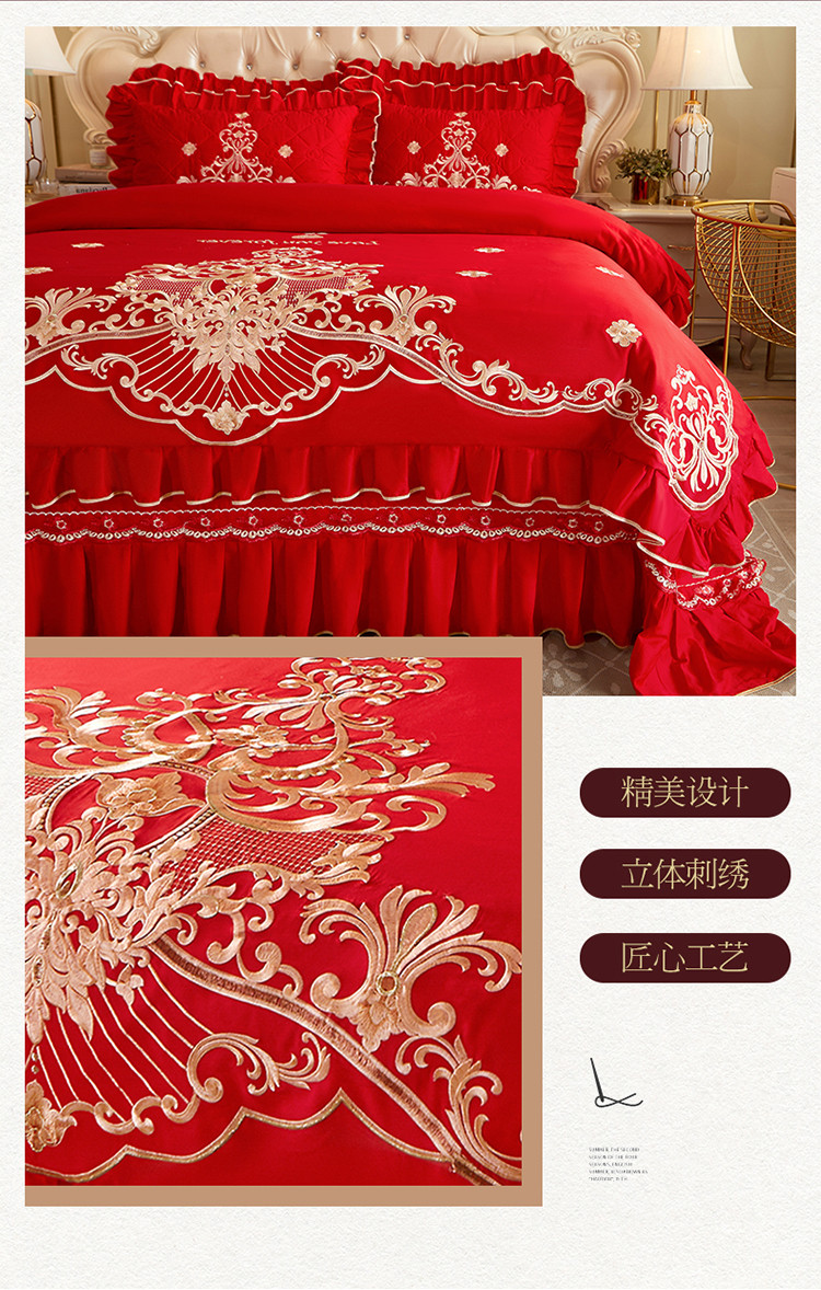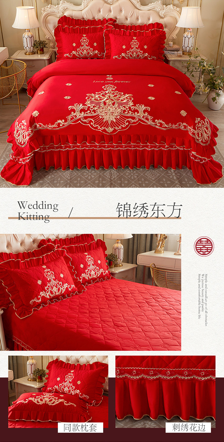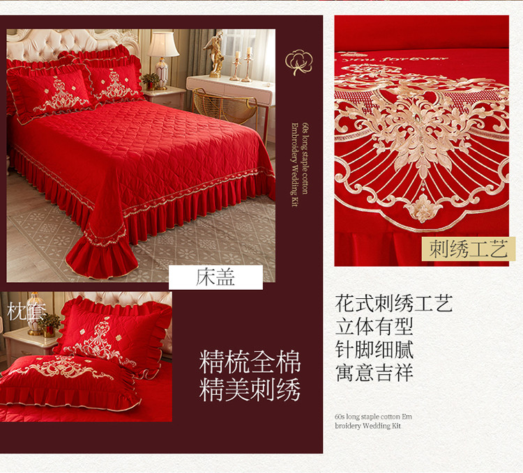 宜凡 2022新款绣花婚庆全棉夹棉床盖款四件套 锦绣东方