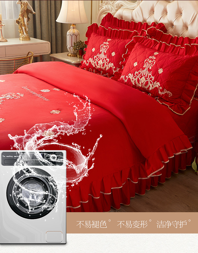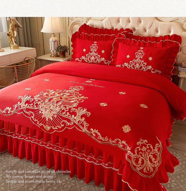 (总)宜凡家纺 2025新款婴儿绒压花全夹棉床裙四件套,韵雅-中国红,韵雅-黑天鹅