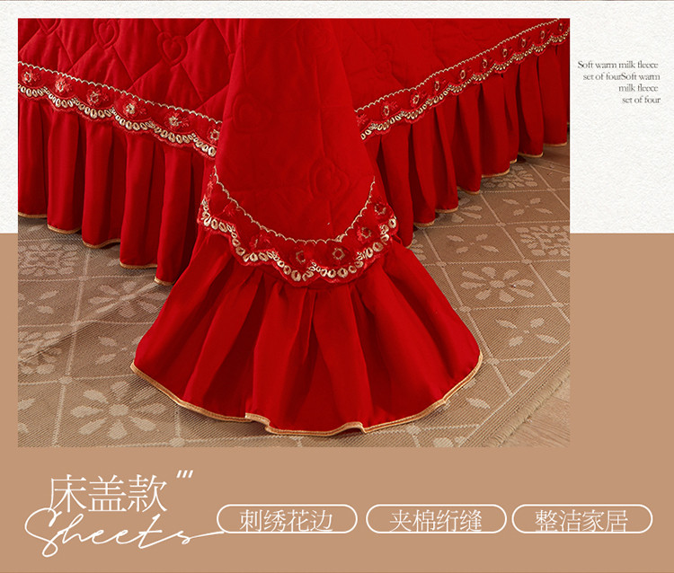(总)宜凡家纺 2025新款兔绒提花牛奶绒夹棉床裙四件套,爱心 少女粉,爱心 粉紫,爱心 驼色,蝶舞 大红,蝶舞 米色,蝶舞 浅紫,蝶舞 玉色,简爱 苍青,简爱 豆沙紫,简爱 玉色,樱桃 苍青,樱桃 豆沙紫,樱桃 奶油白