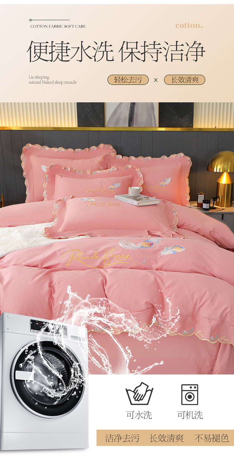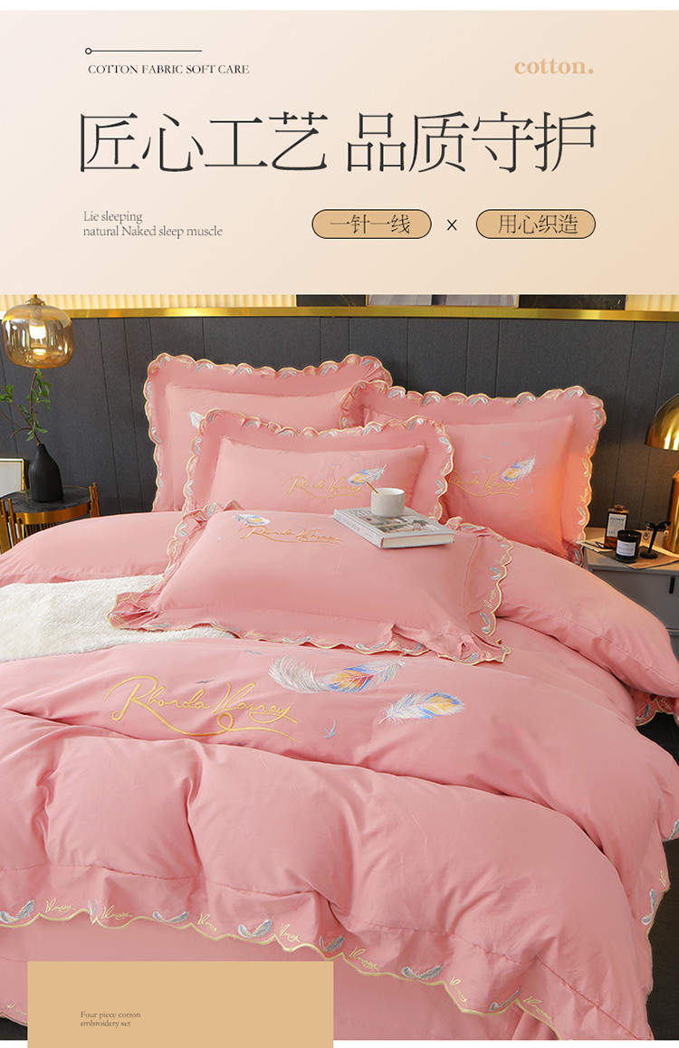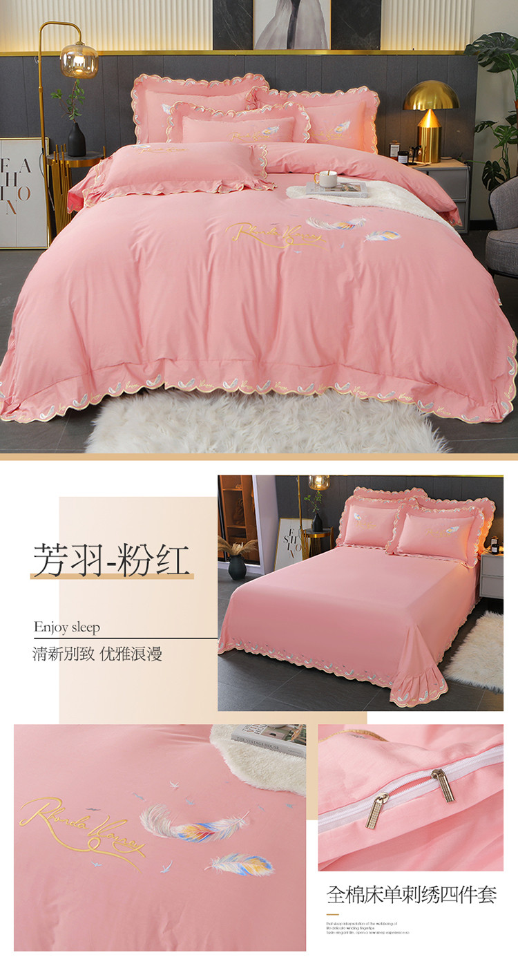 宜凡 2022新款全棉刺绣床单款四件套 芳羽-粉红