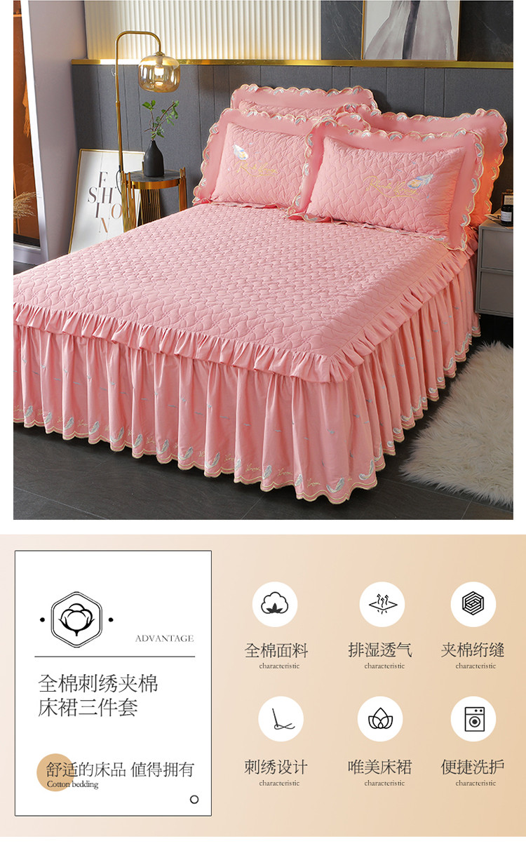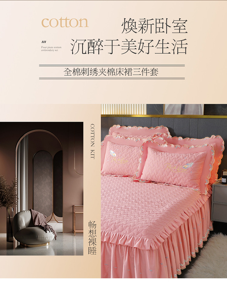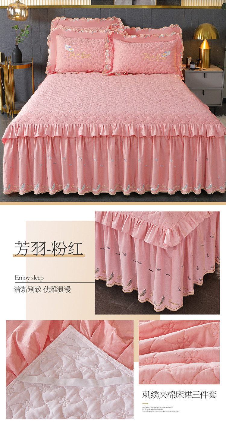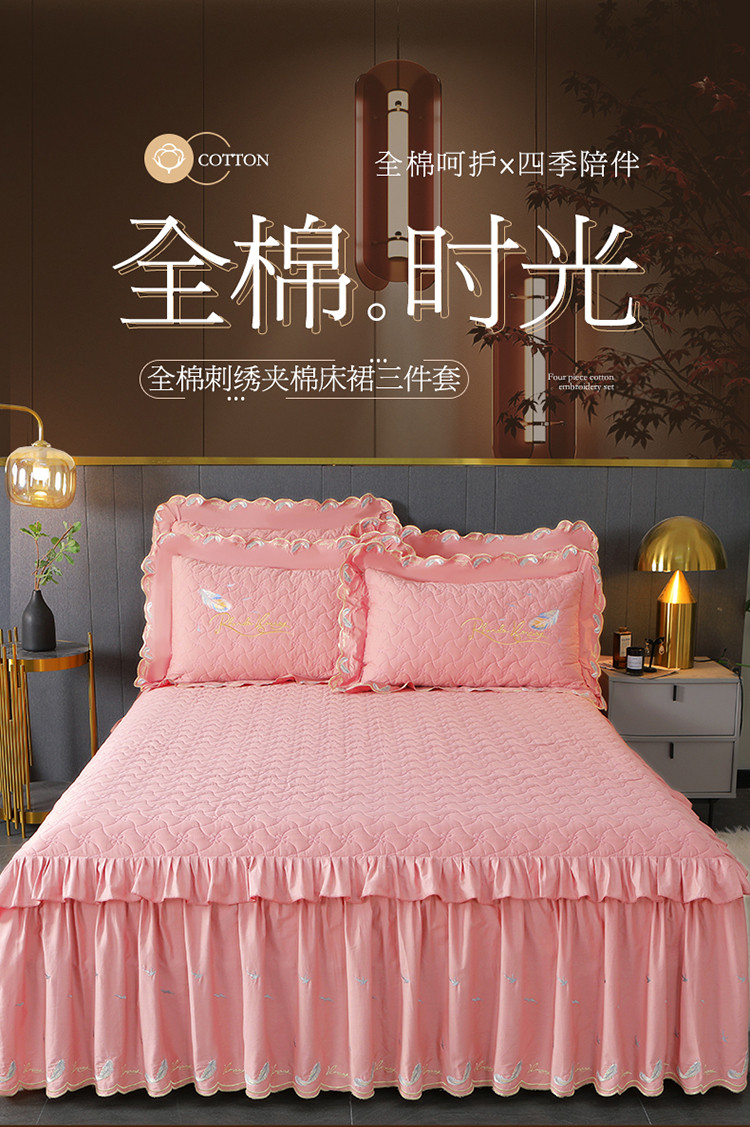 当前位置: 91家纺网 > 商品网购 > 床品套件 > 三件套 > 宜凡 2022新款全棉刺绣夹棉床裙款三件套-芳羽 芳羽粉红