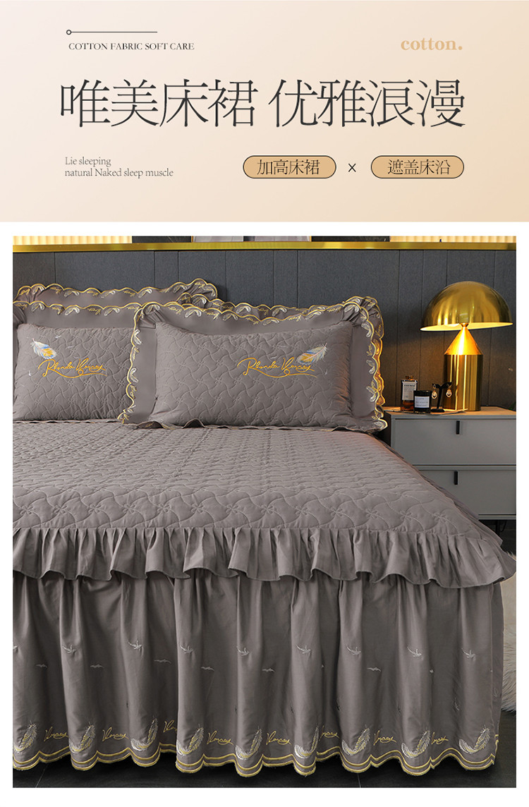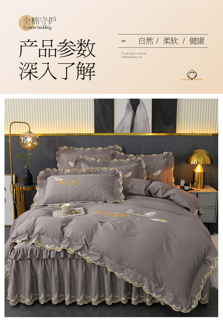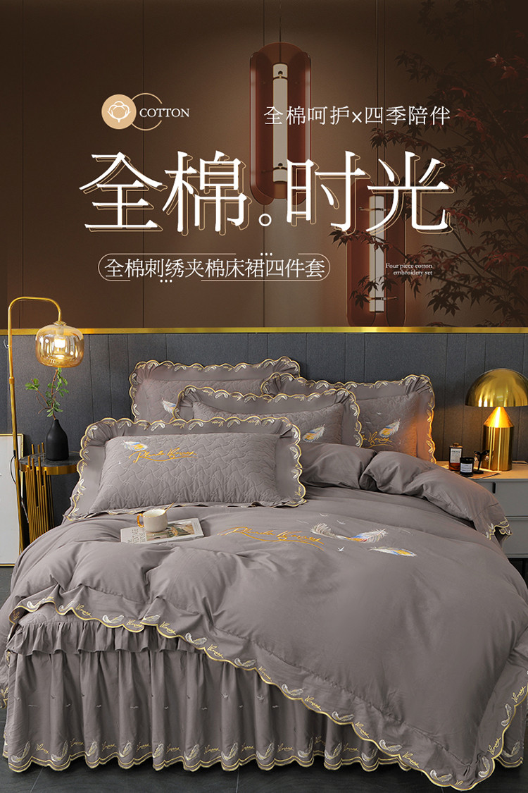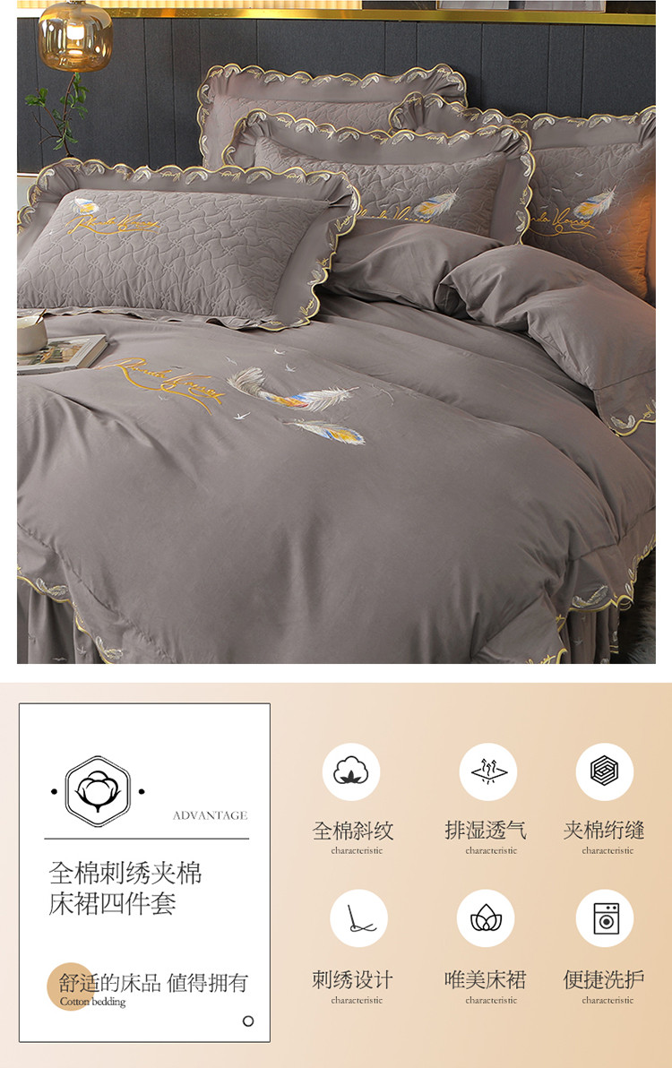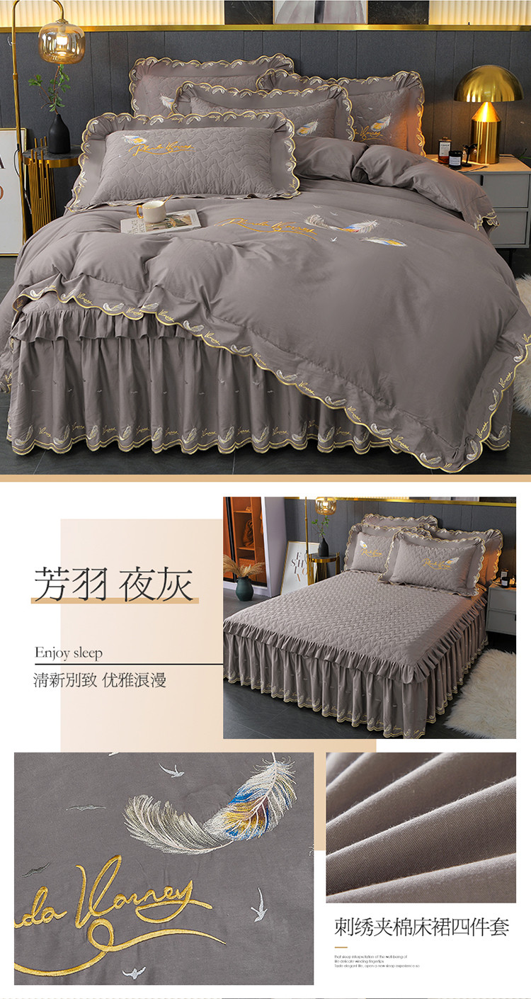 当前位置: 91家纺网 > 商品网购 > 床品套件 > 四件套 > 全棉普通四件套 > 宜凡 2022新款全棉刺绣夹棉床裙款四件套-芳羽 芳羽夜灰