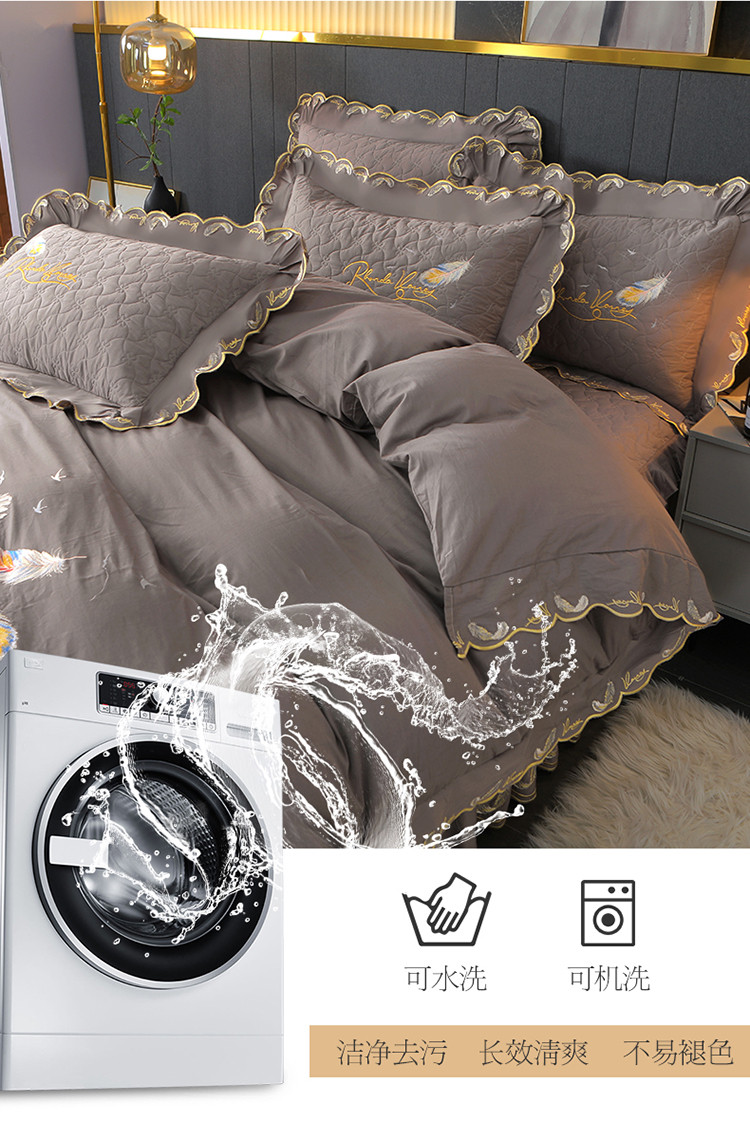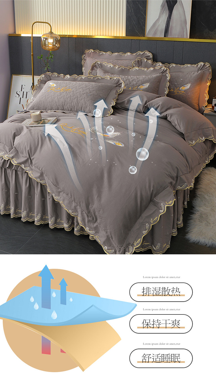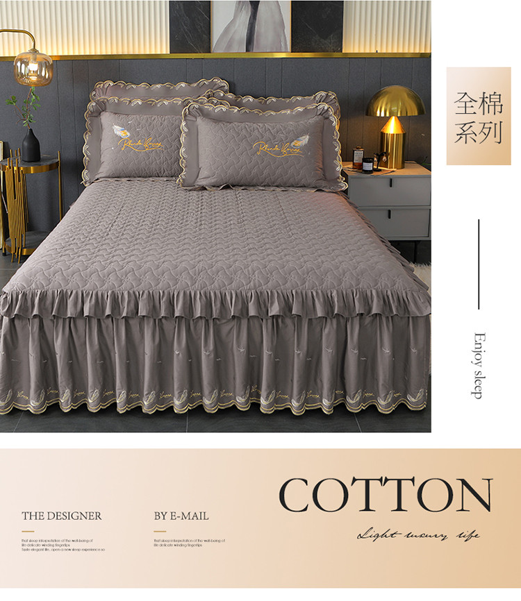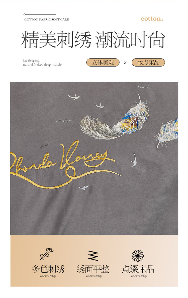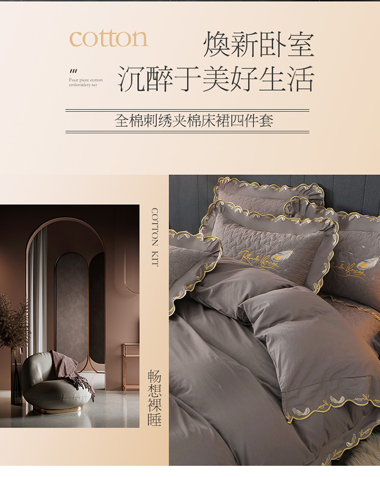 当前位置: 91家纺网 > 商品网购 > 床品套件 > 四件套 > 全棉普通四件套 > 宜凡 2022新款全棉刺绣夹棉床裙款四件套-芳羽 芳羽夜灰