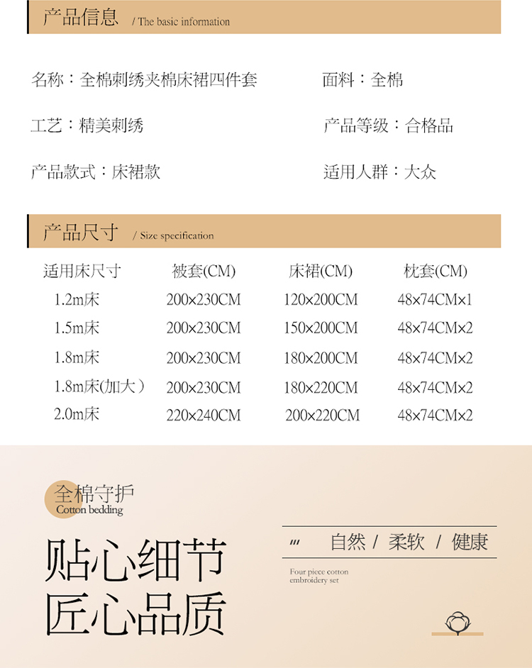 180x220cm夹棉床裙款四件套 | ¥370.00 |