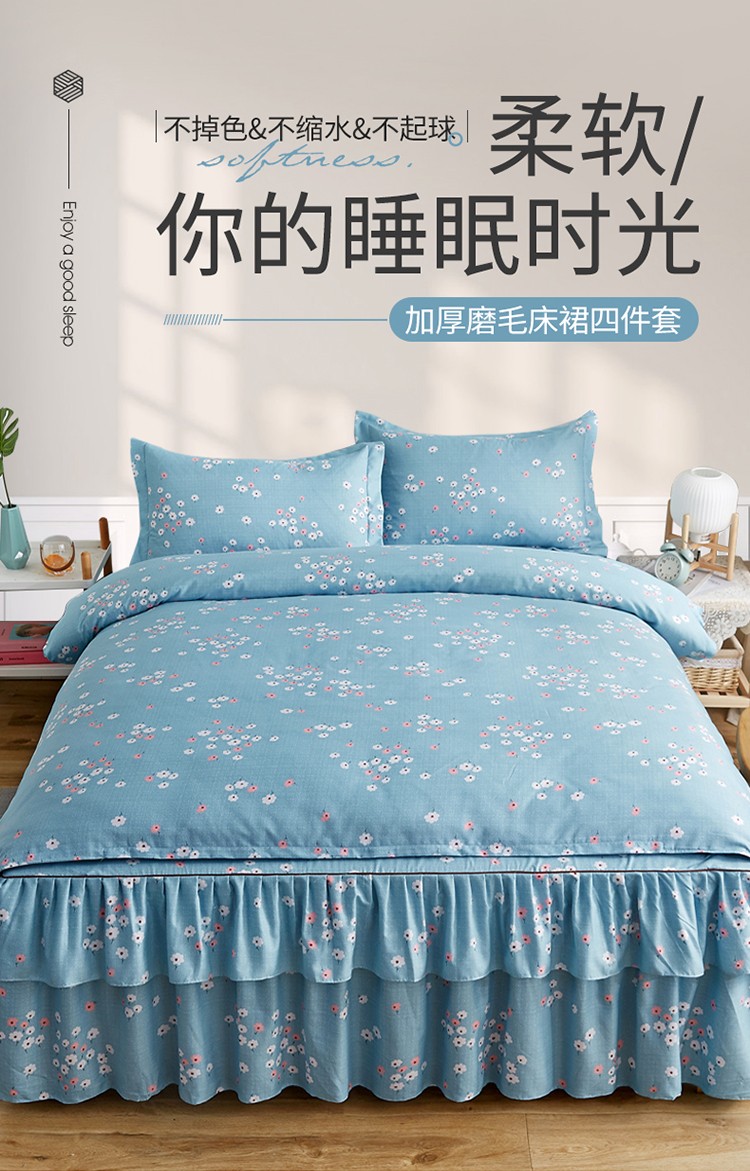 代芙 2022新款加厚磨毛双边床裙四件套 繁花点点
