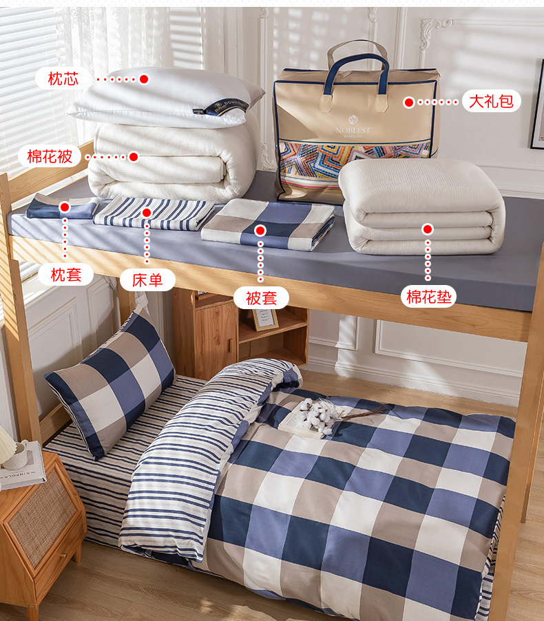 套装一:三件套+3斤棉花床垫+3斤棉花被+枕芯+包装