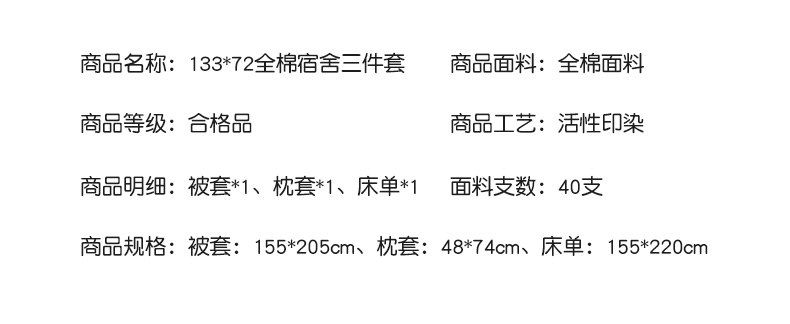 商品名称:总斯尔顿 2025新款全棉纯环保印染三件套学生宿舍