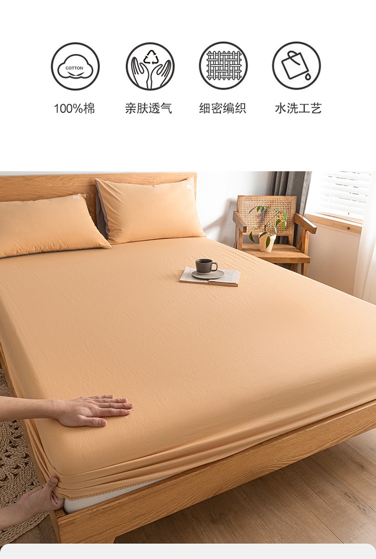 • 91家纺网 家纺一手货源 找家纺 蓝巢 2022新款全棉色织水洗棉单床笠 南瓜橘