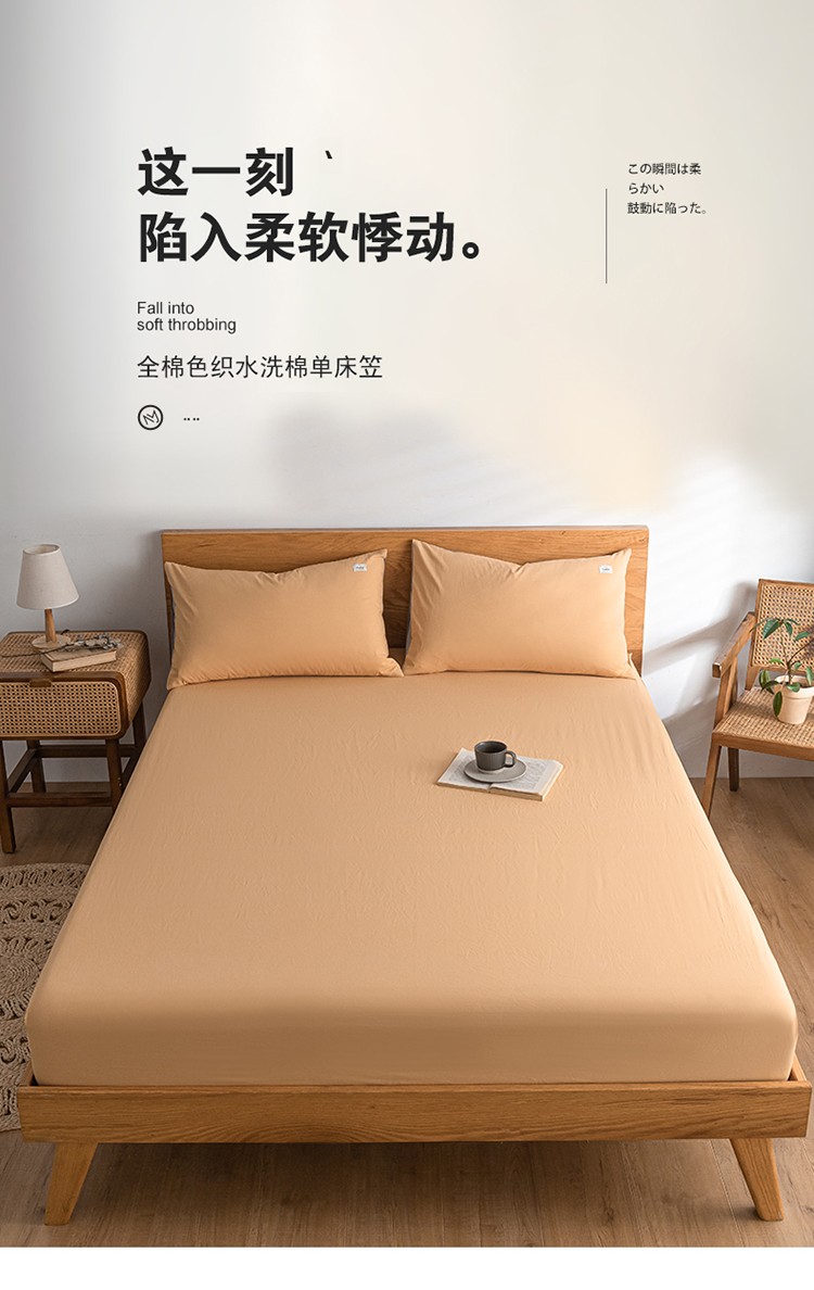 蓝巢 2022新款全棉色织水洗棉单床笠 南瓜橘