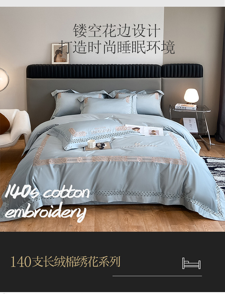 总高大尚2022新款全棉贡缎刺绣居家系列四件套梵洛卡