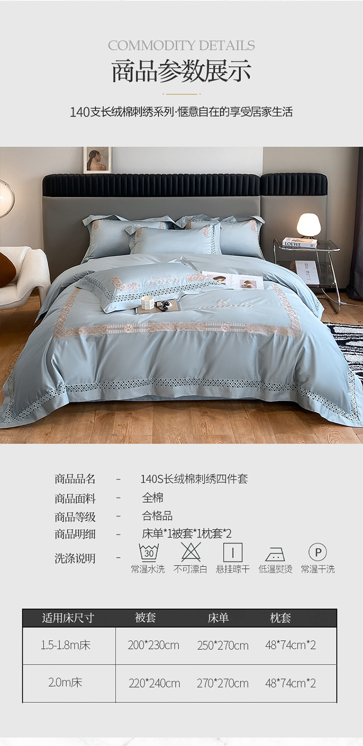 商品名称:总高大尚2022新款全棉贡缎刺绣居家系列四件套梵洛卡