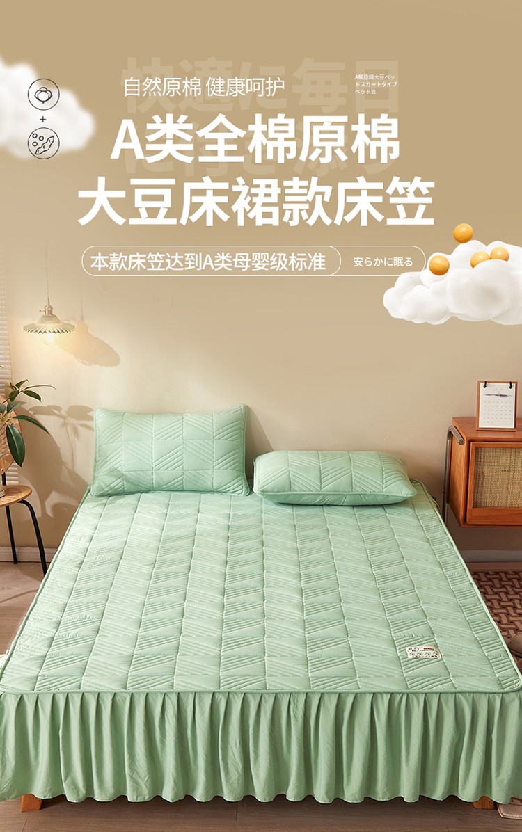 (总)居眠2022新款A类原棉大豆夹棉床裙款床笠全棉原棉床笠