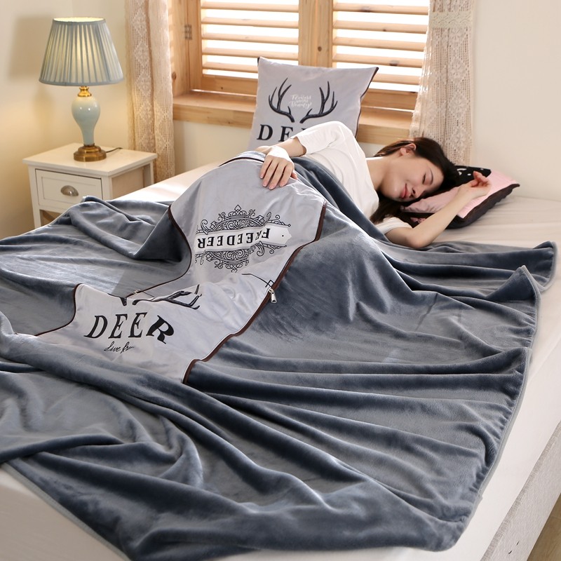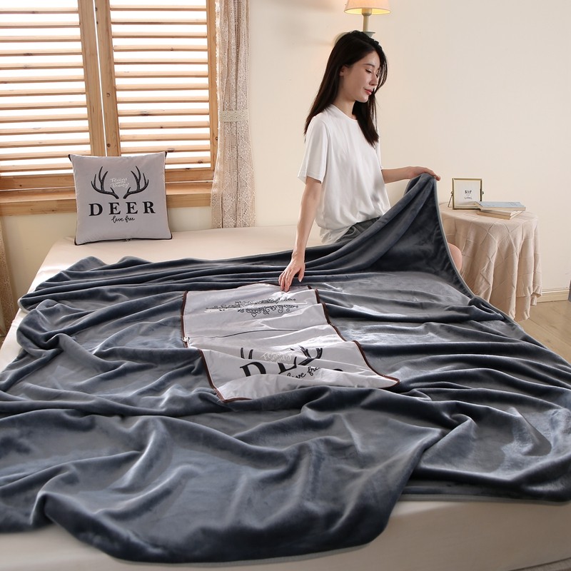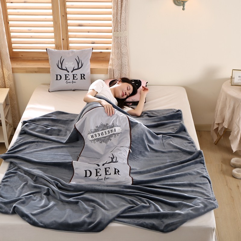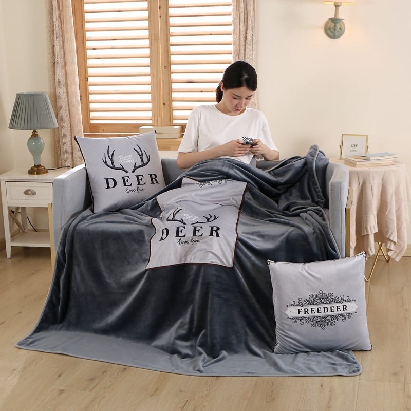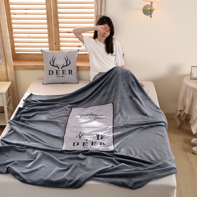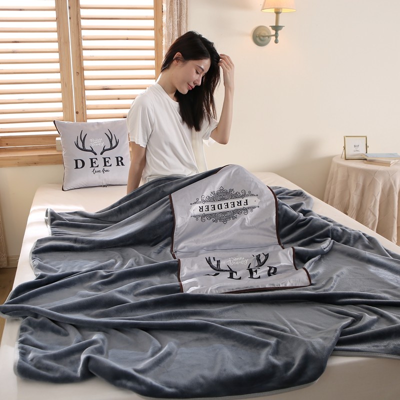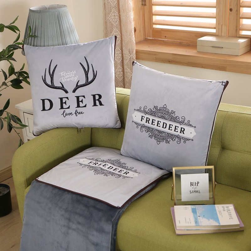 素玖抱枕被 2023新款外面水晶绒里面灰色法兰绒毛毯抱枕毯 北欧麋鹿