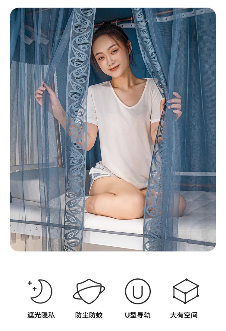 商品名称:总 飞轮海新款U型双轨道双皮条伸缩床帘学蚊帐XD-8