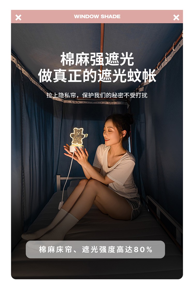 飞轮海蚊帐 2025新款强遮光防蚊学生蚊帐-XZ-99(靠墙帘选配)熊猫宝,熊猫宝