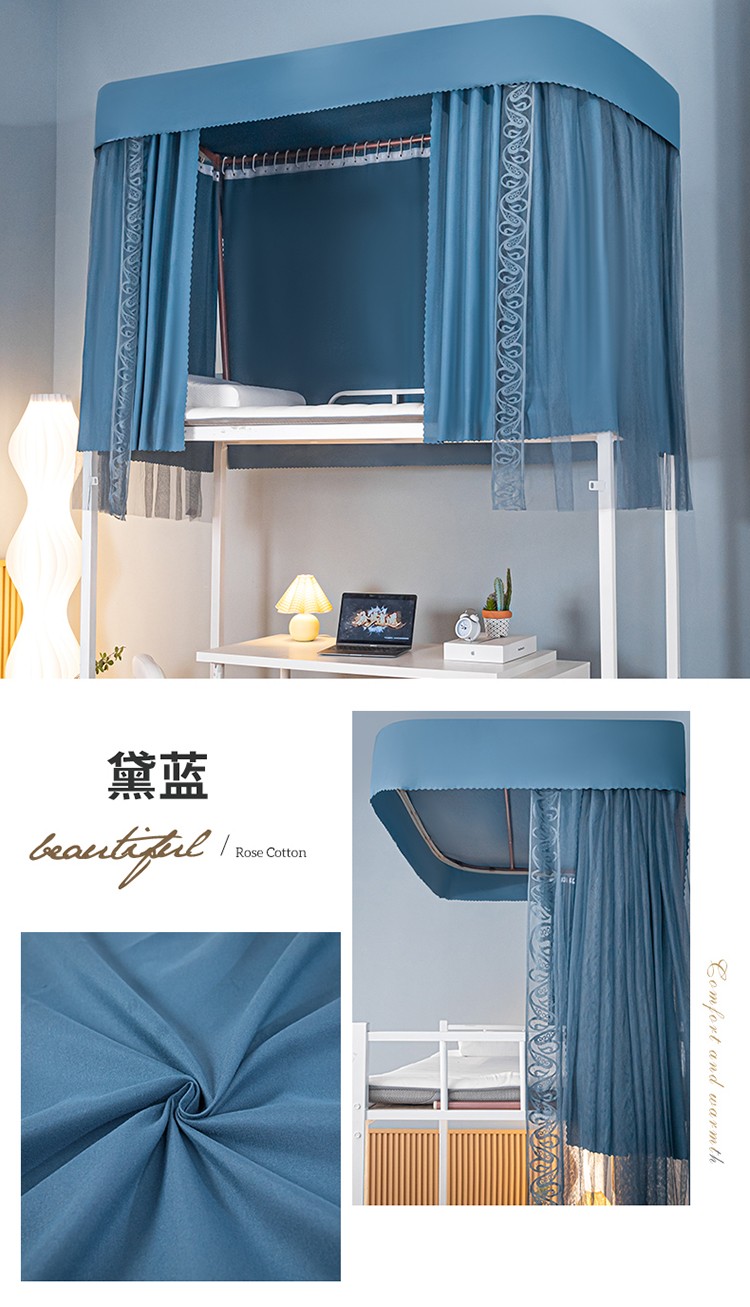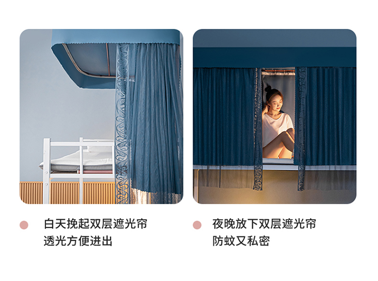 (总)飞轮海蚊帐 2023新款U型三开门遮光坐床蚊帐-Z-75,黛蓝,奶油黄,香槟