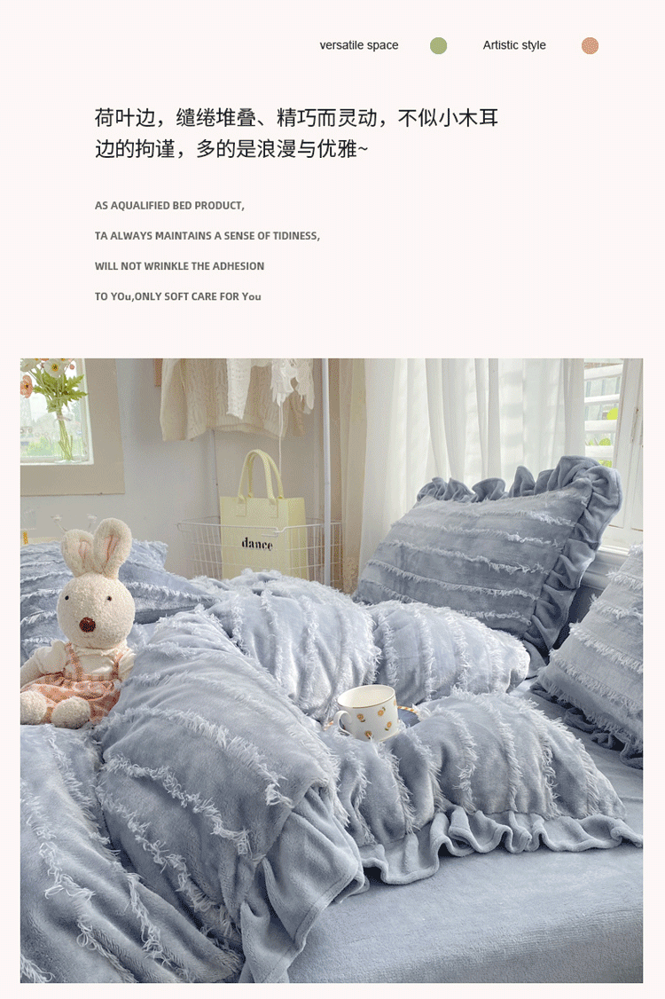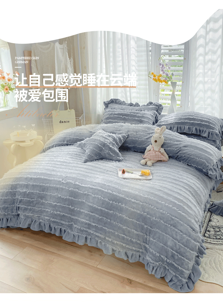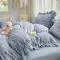 (总)绒世界 2025新款四季款夹棉泡泡纱床裙床笠被套四件套系列,浅灰,豆绿,米白,慕蓝,玉色,紫色