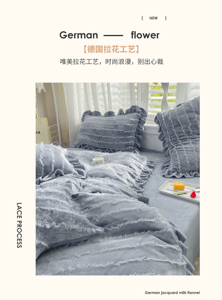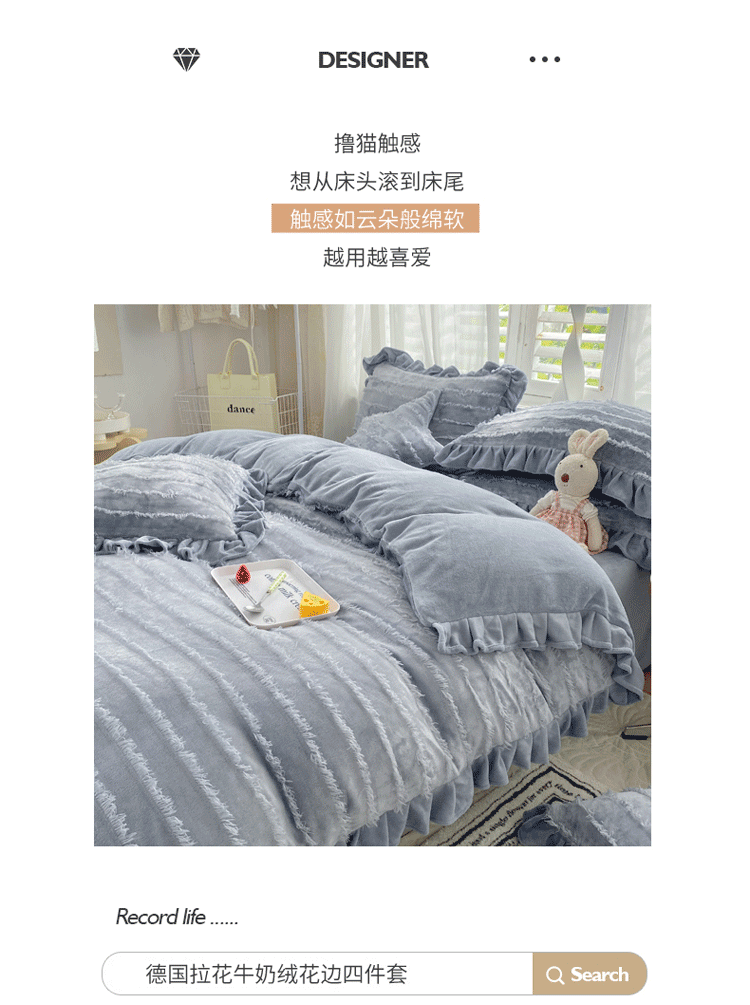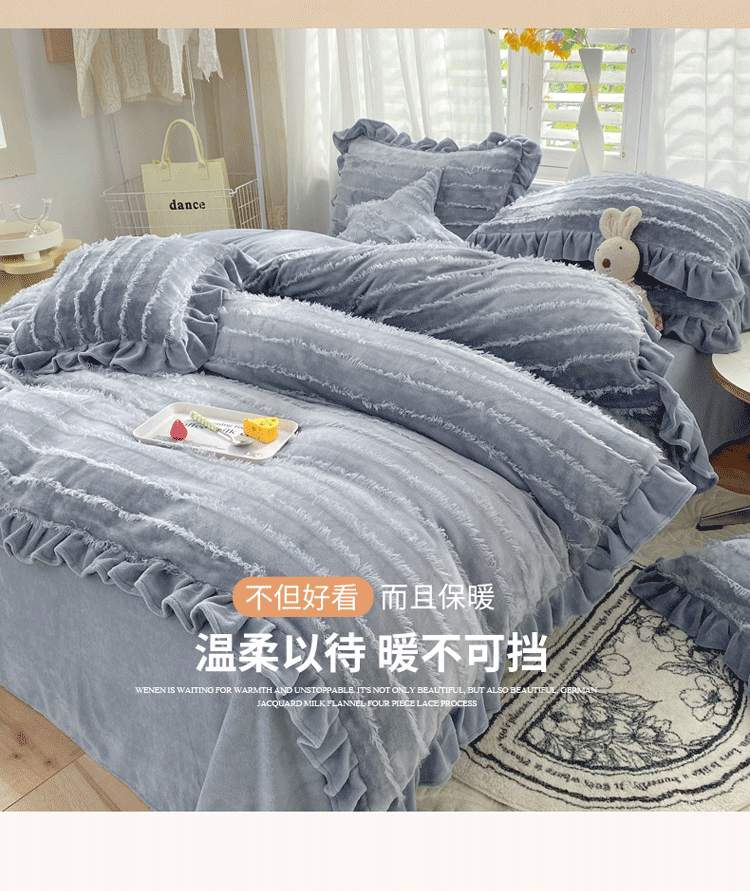 绒世界 2022新款 高端牛奶绒提花四件套 摩登灰