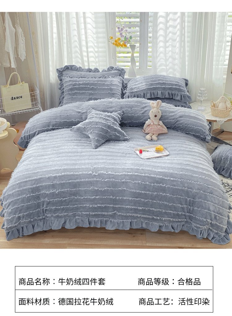 商品名称:绒世界 2022新款 高端牛奶绒提花四件套 摩登灰