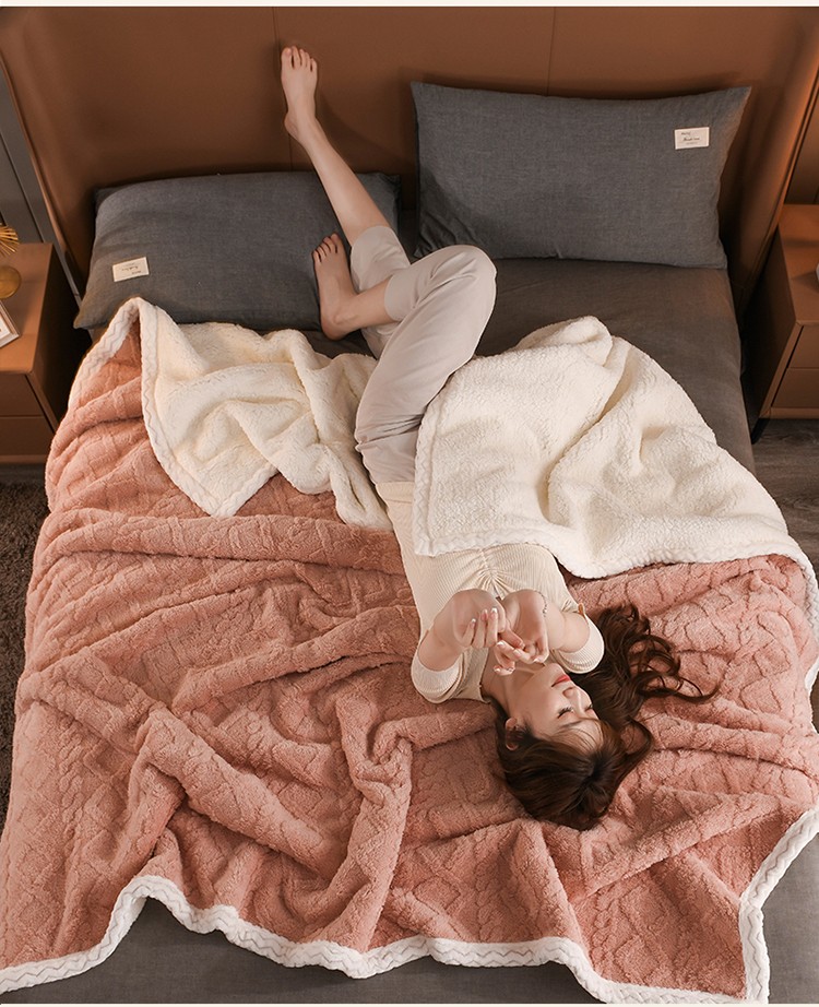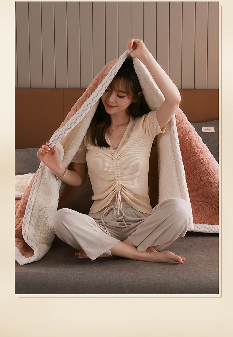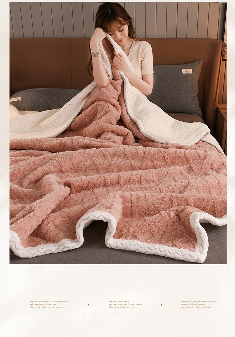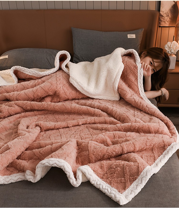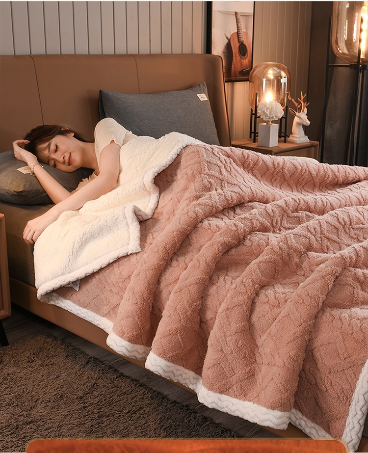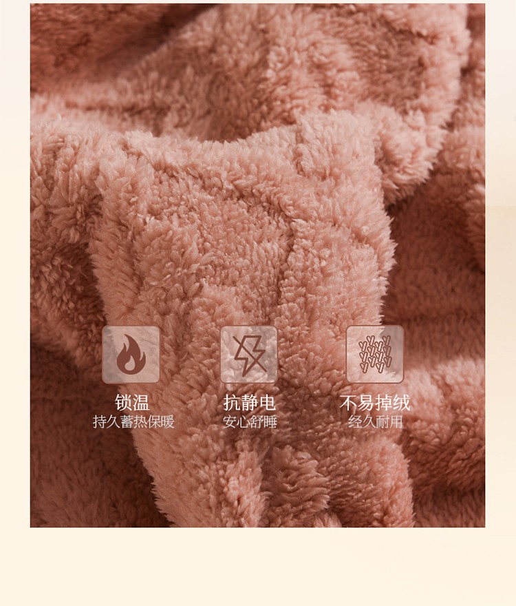 席之家 2023新款加厚牛奶绒塔芙绒羊羔绒毛毯 肉桂粉