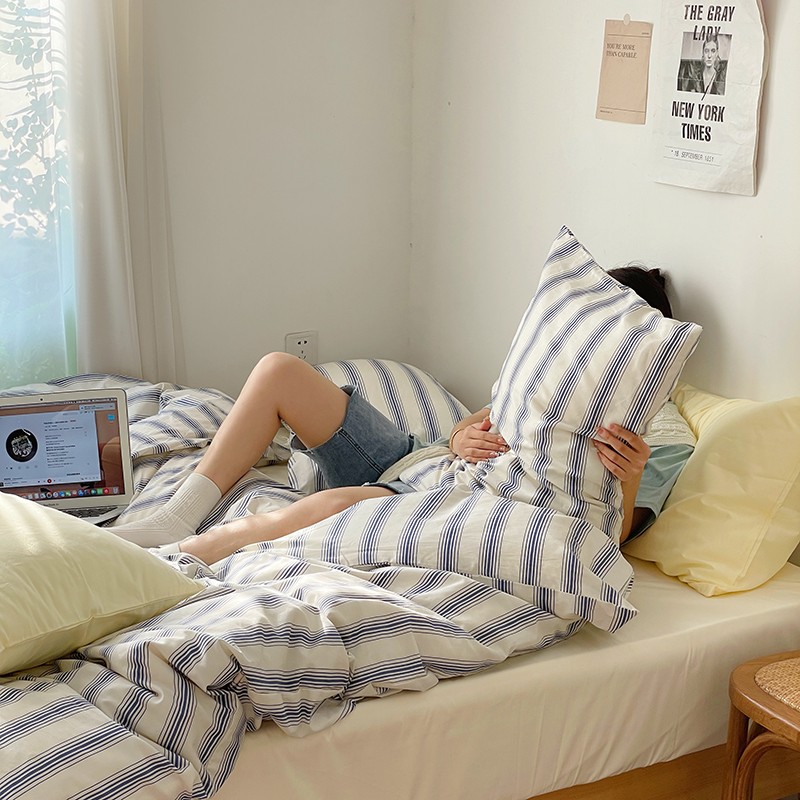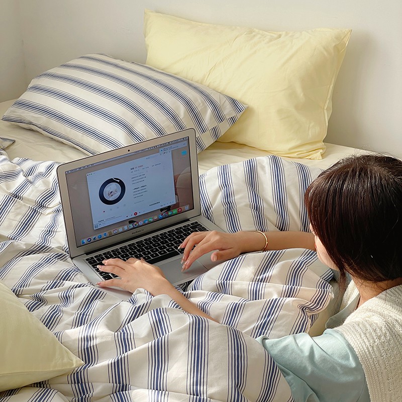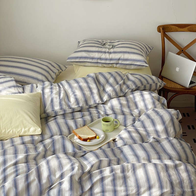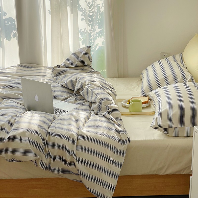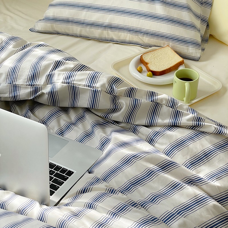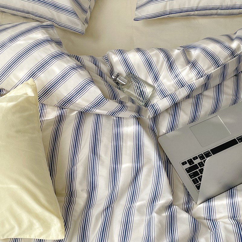 当前位置: 91家纺网 > 商品网购 > 床品套件 > 四件套 > 全棉普通四件套 > 时年 2022新款全棉40支13372ins条纹款四件套 复古钴蓝