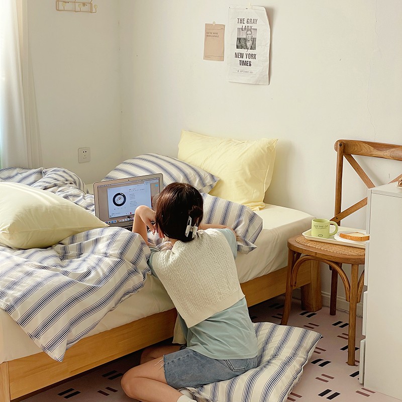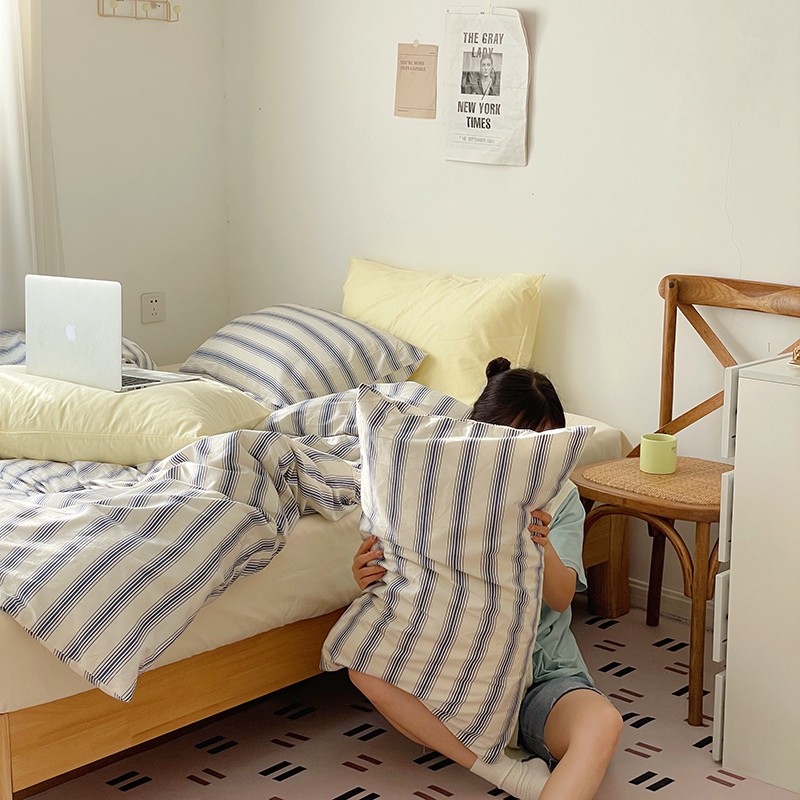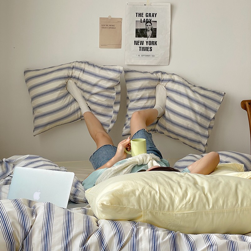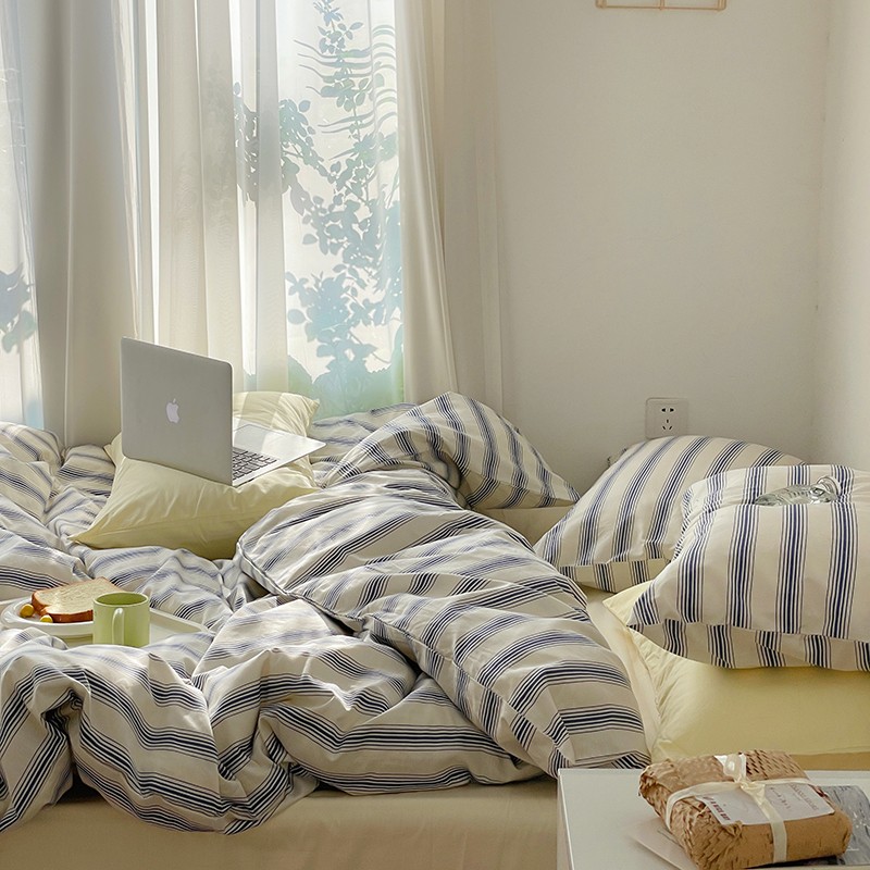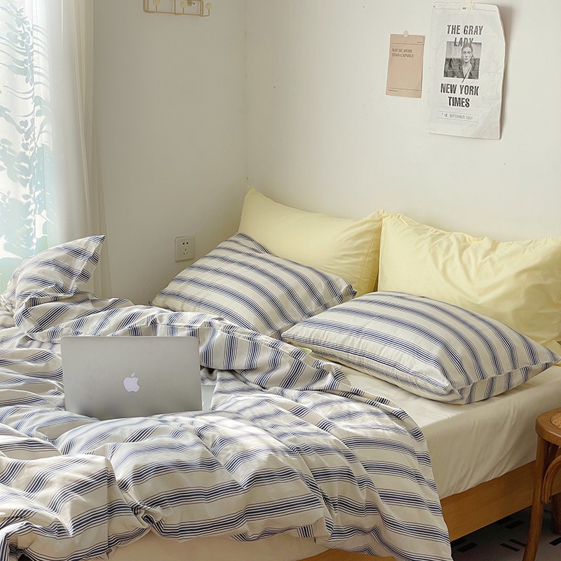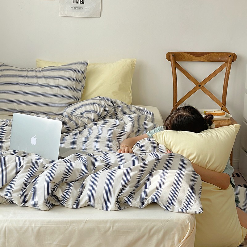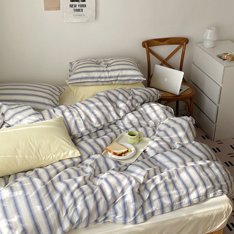 当前位置: 91家纺网 > 商品网购 > 床品套件 > 四件套 > 全棉普通四件套 > 时年 2022新款全棉40支13372ins条纹款四件套 复古钴蓝