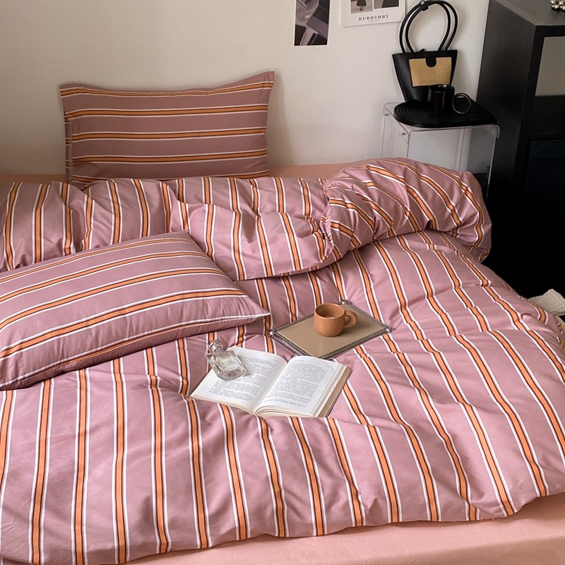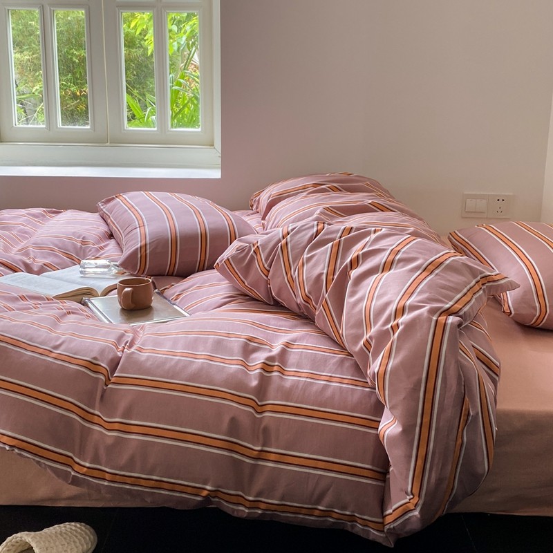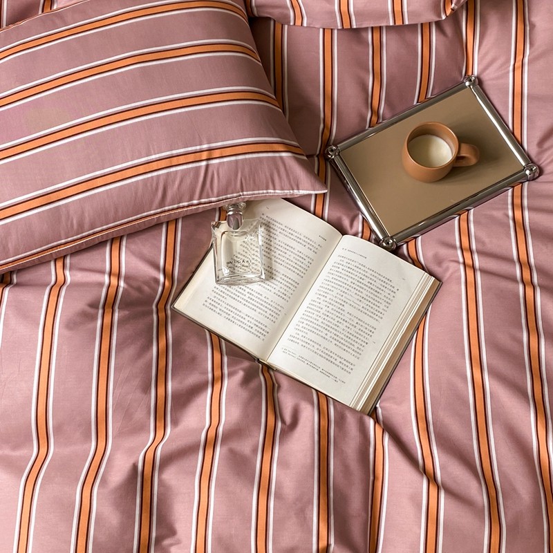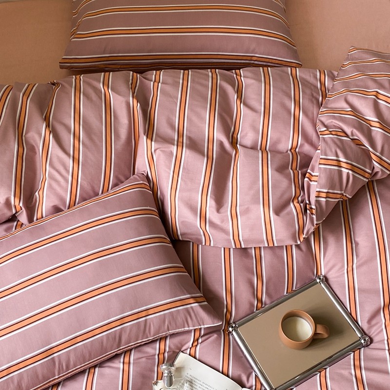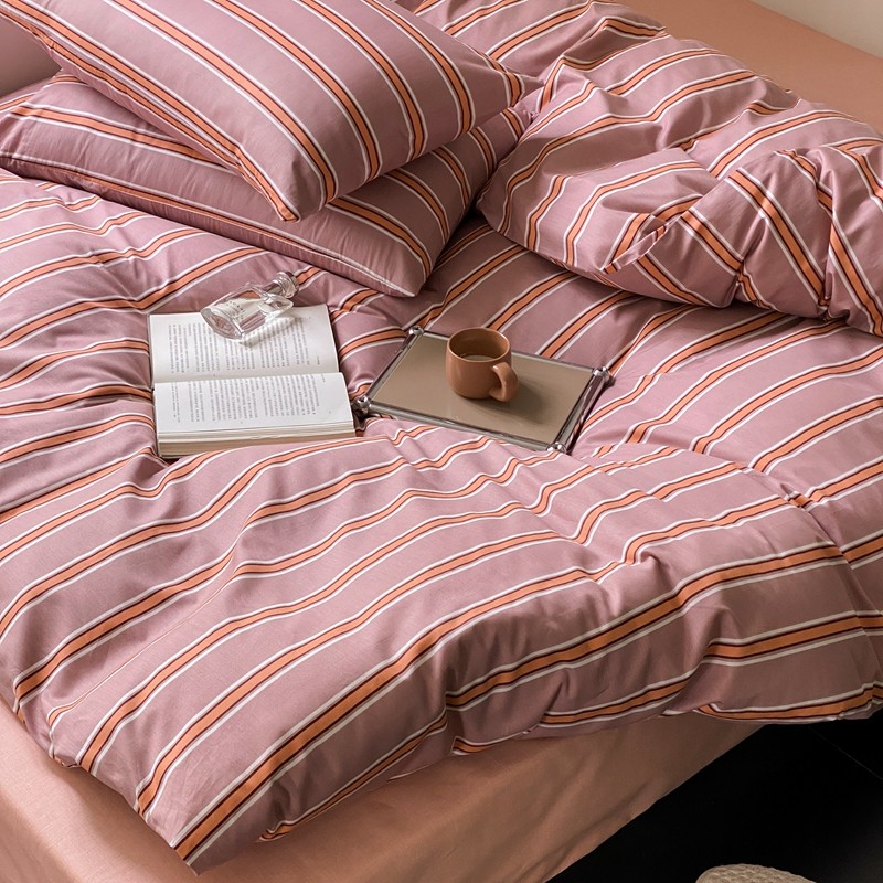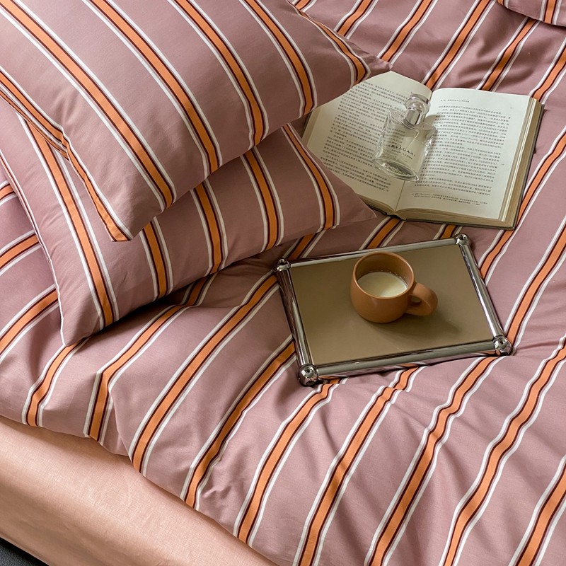 昔可 2022新款全棉四件套新款影棚图 棕粉条