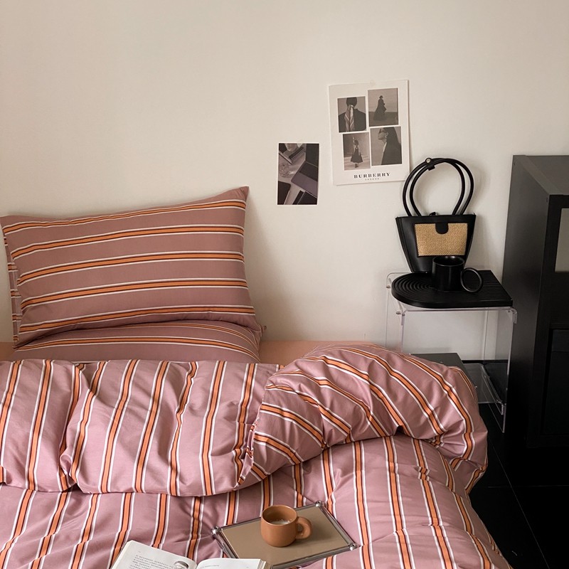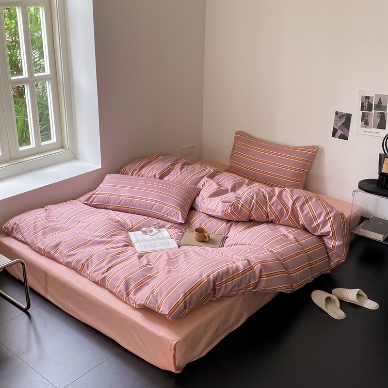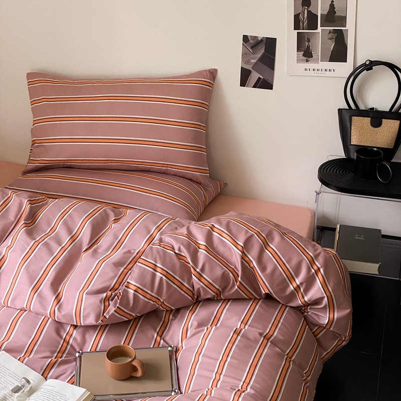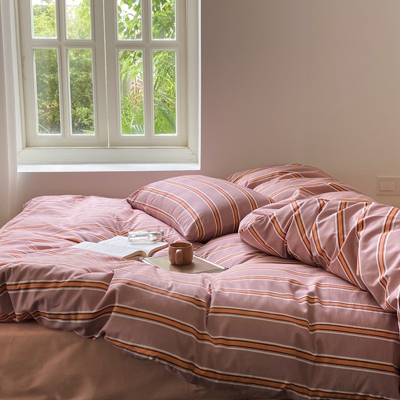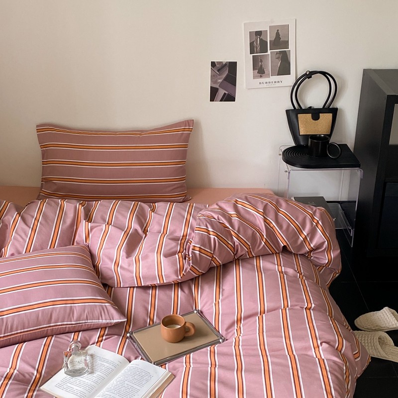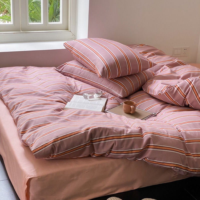 昔可 2022新款全棉四件套新款影棚图 棕粉条