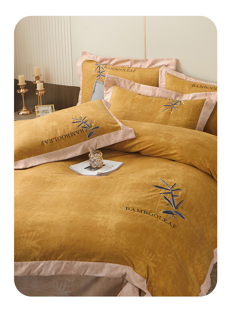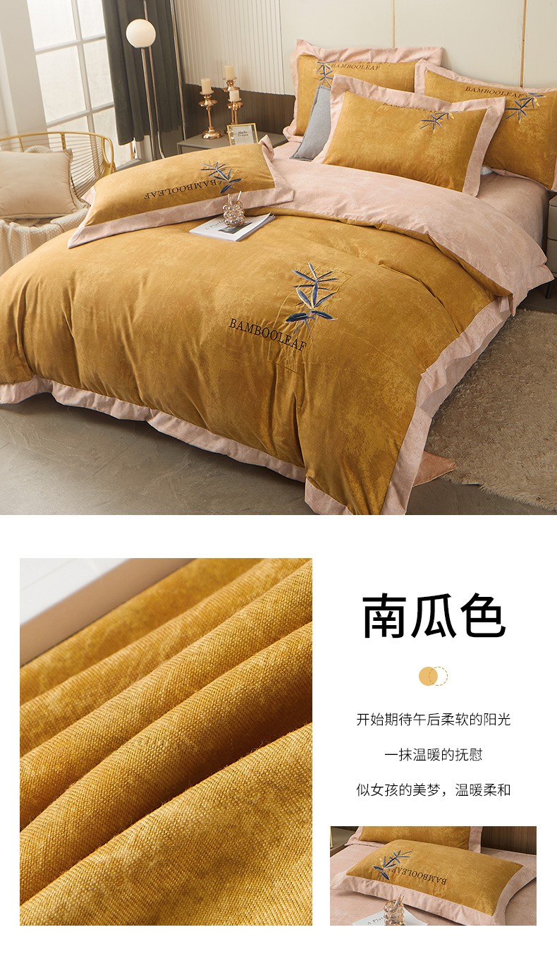 梦柏家纺 2022新款亲肤雅棉绣花四件套 南瓜色