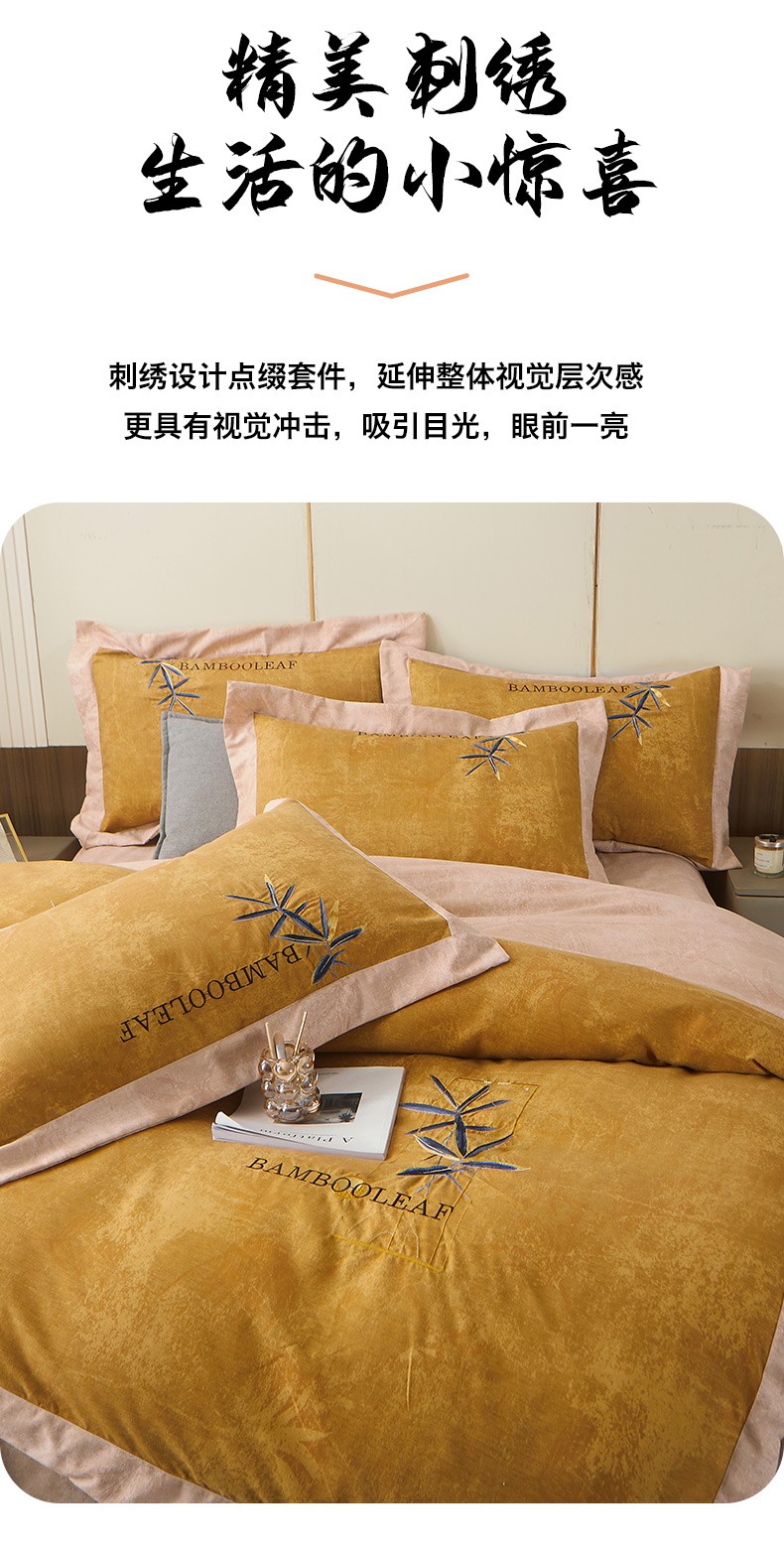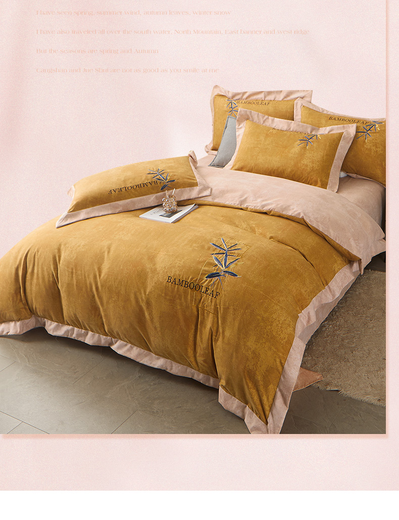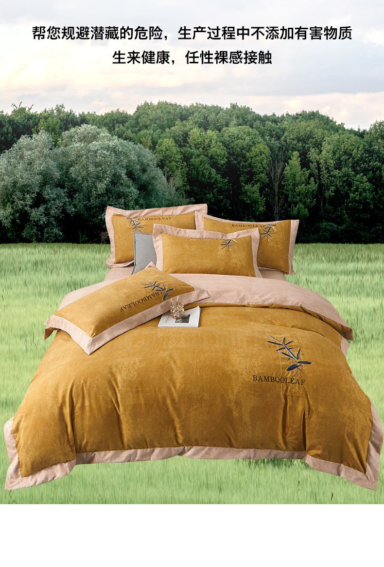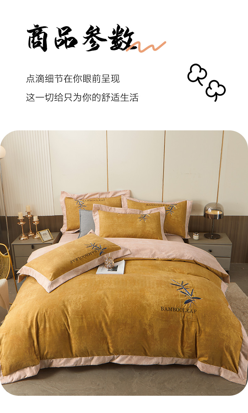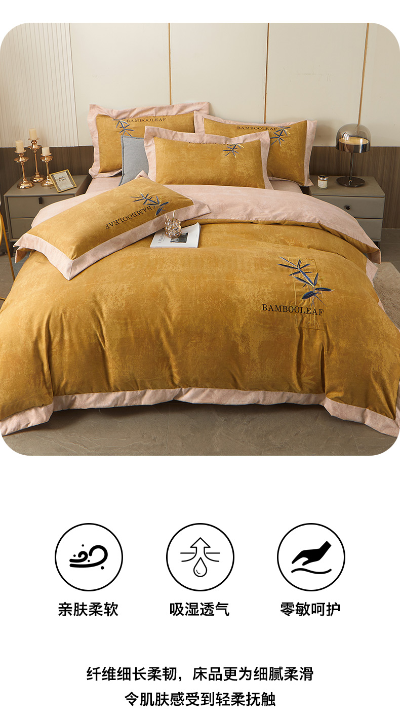 (总)梦柏家纺 2022新款亲肤雅棉绣花四件套,茶色,魔力灰,南瓜色,珊瑚绿,深海兰,杏色