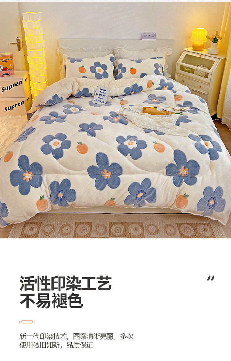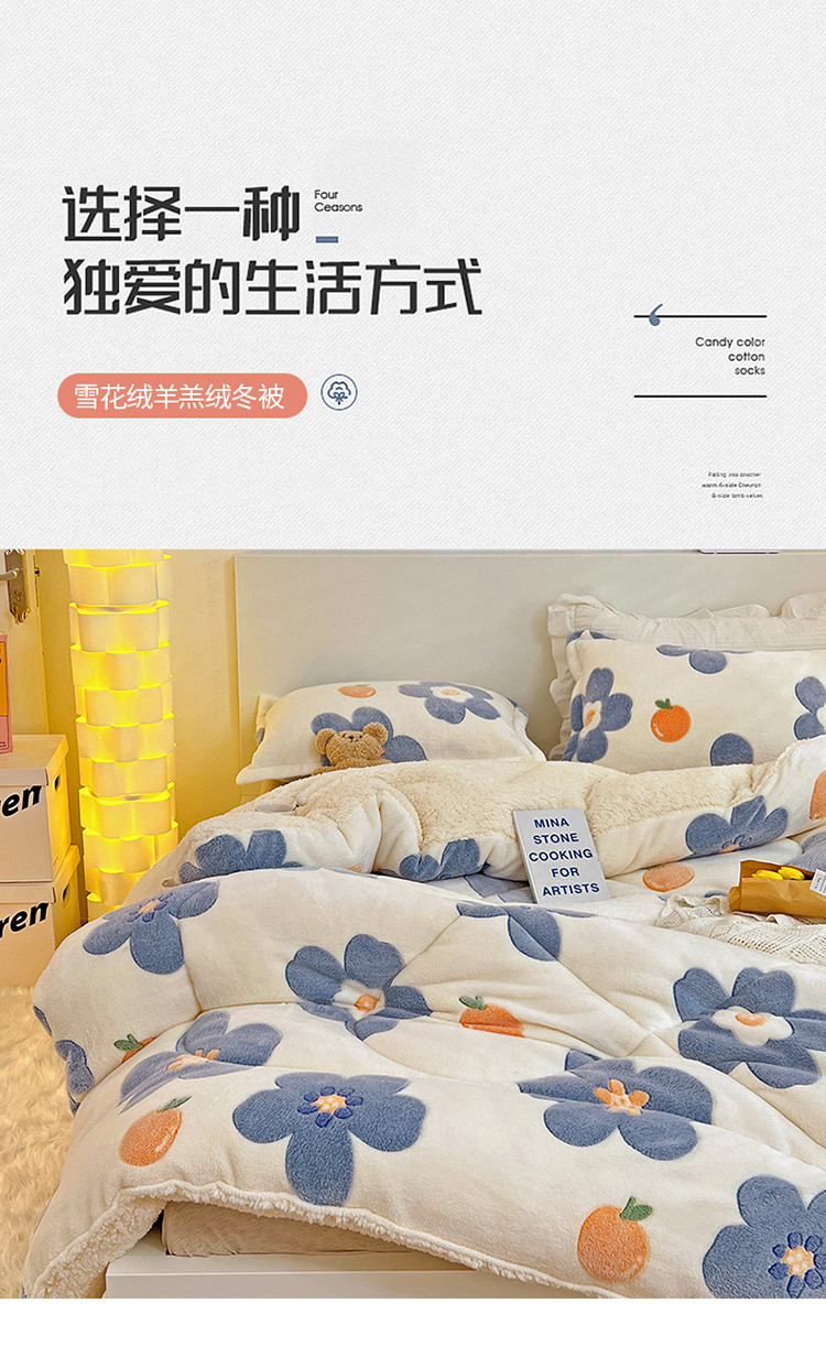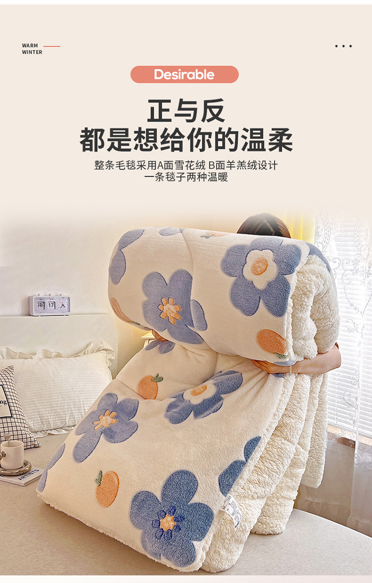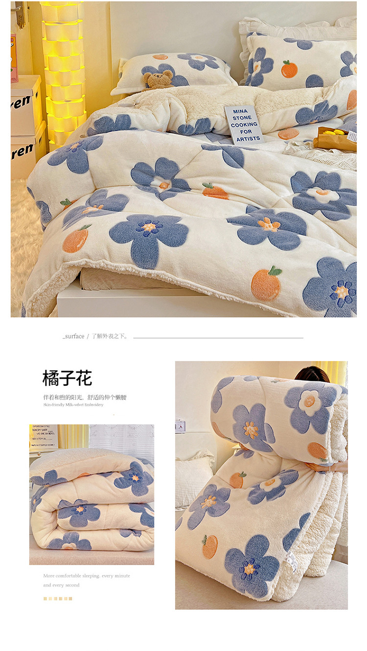 佰亿莱 2024新款双面绒A版雪花绒B版羊羔绒冬被橘子花