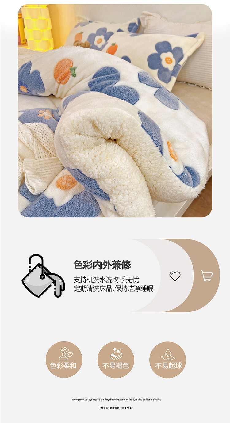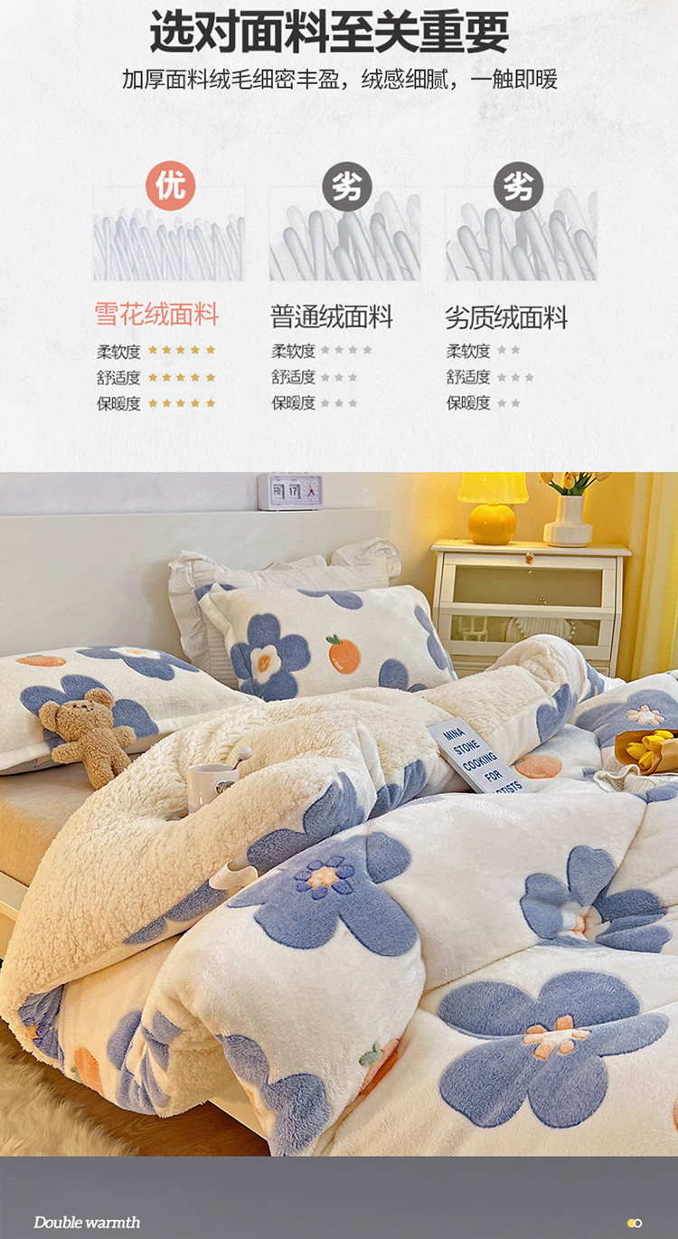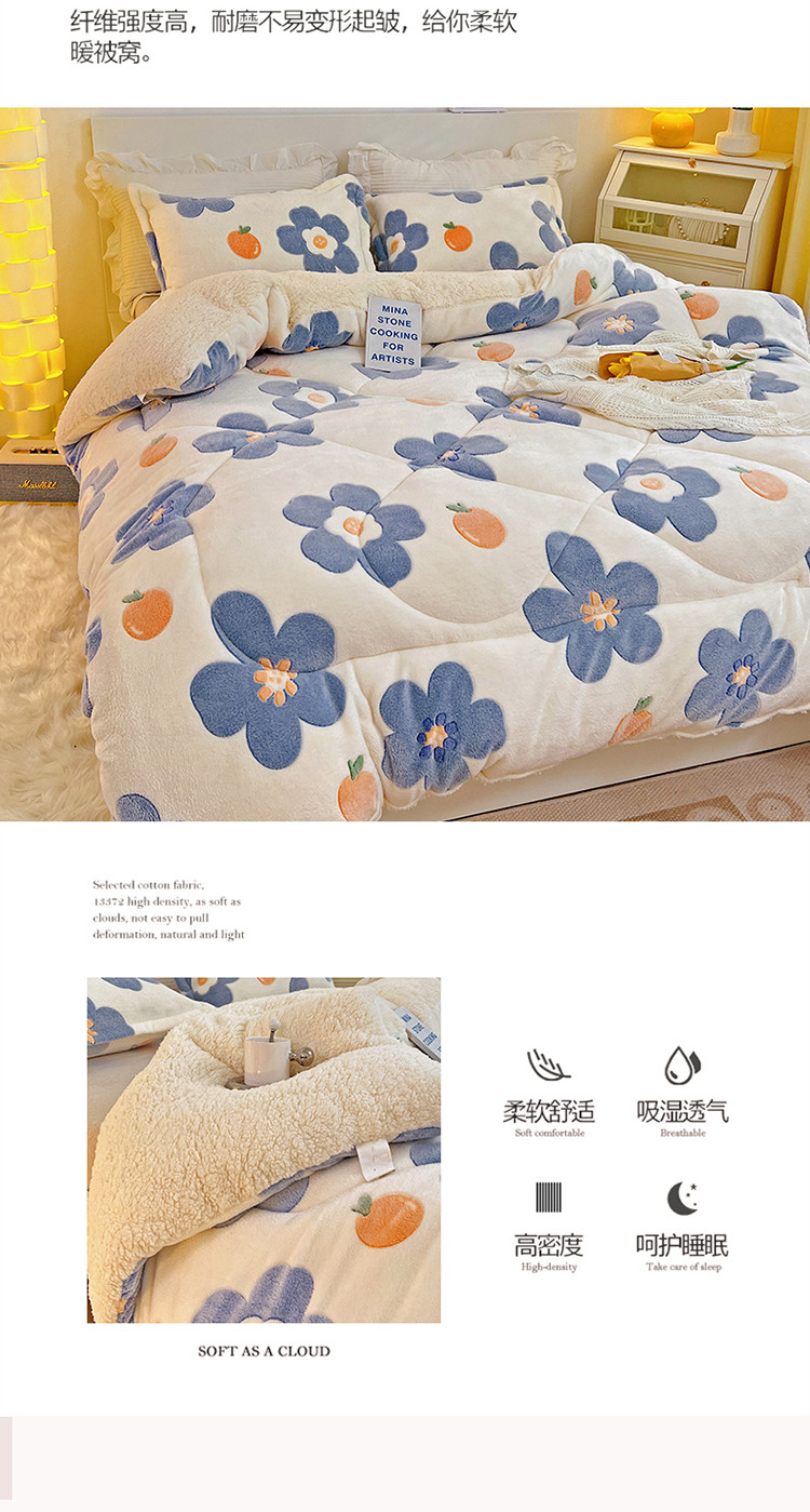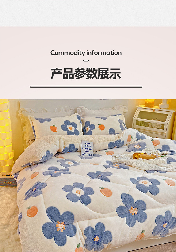 佰亿莱 2024新款双面绒A版雪花绒B版羊羔绒冬被橘子花