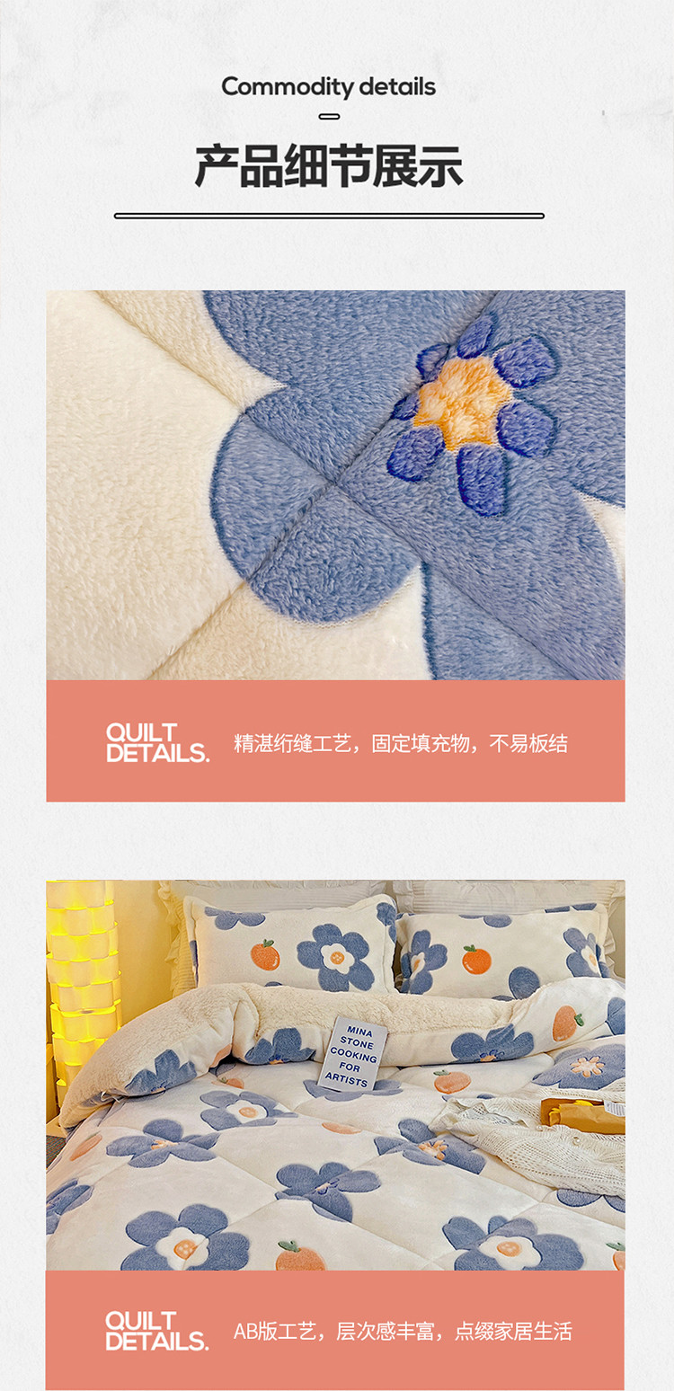 • 91家纺网 家纺一手货源 找家纺 佰亿莱 2024新款双面绒A版雪花绒B版羊羔绒冬被橘子花