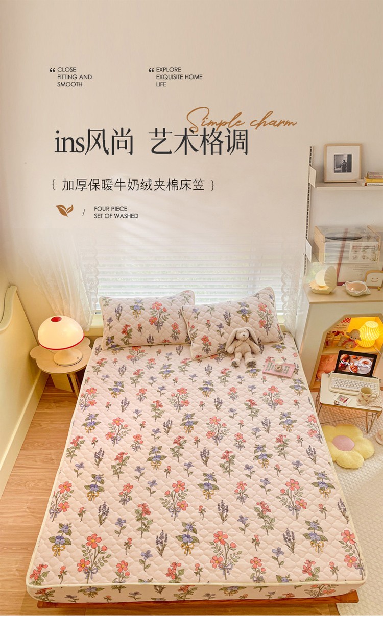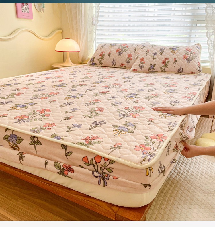 沐慕 2022牛奶绒夹棉床笠 捧花