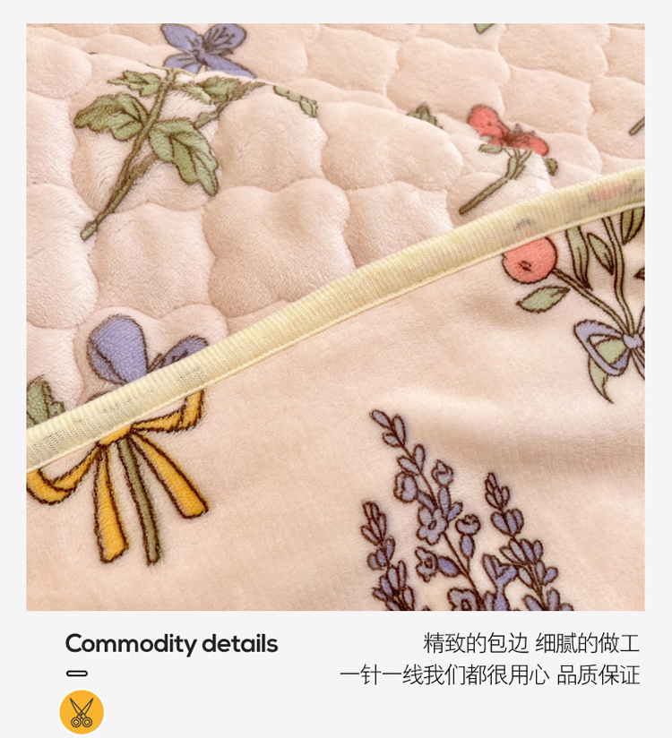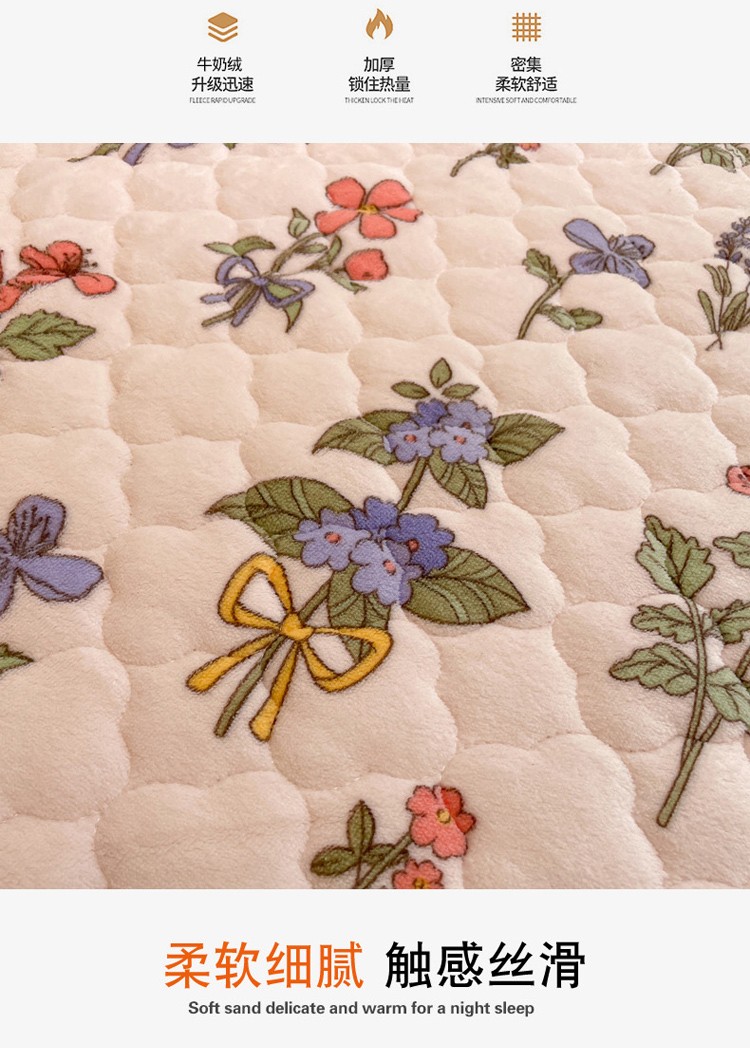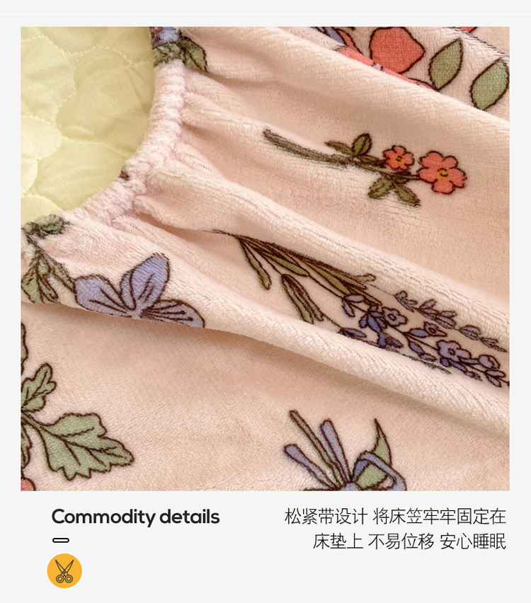 • 91家纺网 家纺一手货源 找家纺 沐慕 2022牛奶绒夹棉床笠 捧花