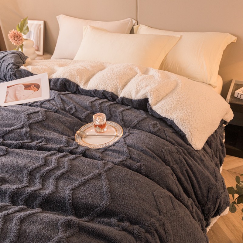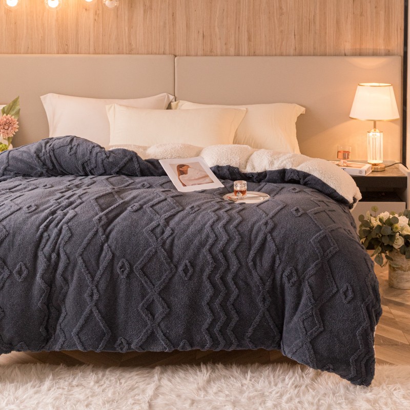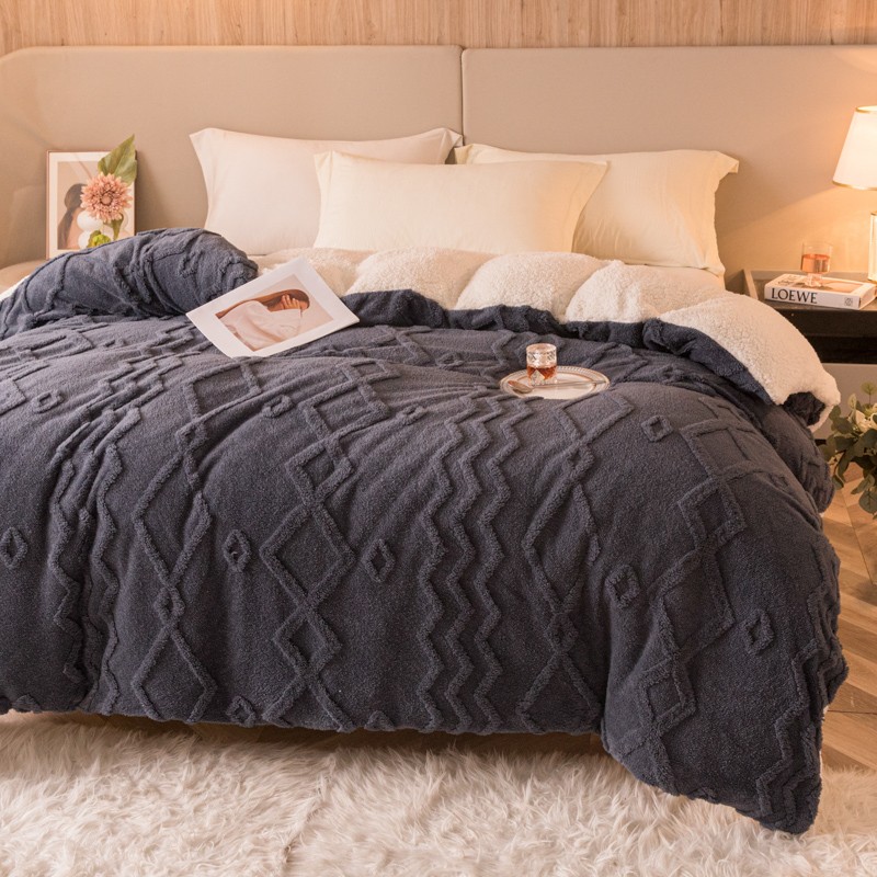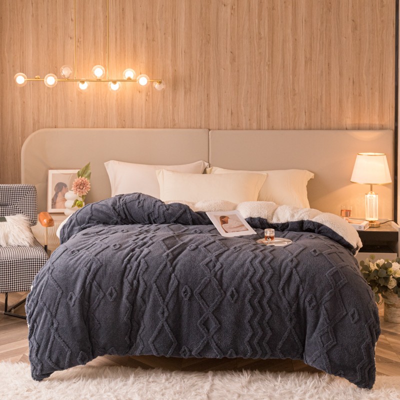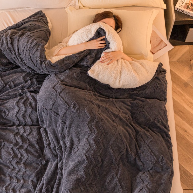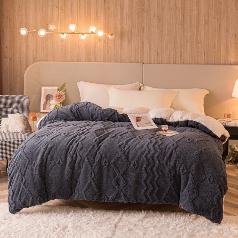 商品名称:简爱-2025舒棉绒羊羔绒单被套多功能毯 纹路菱形格-深灰
