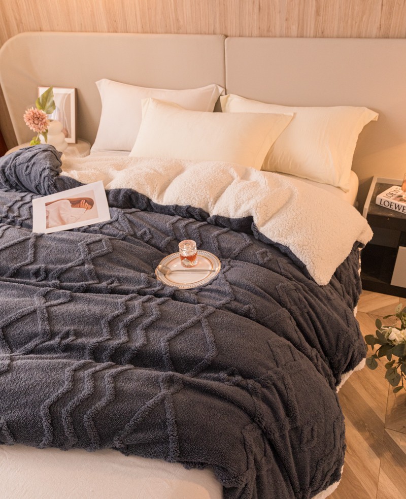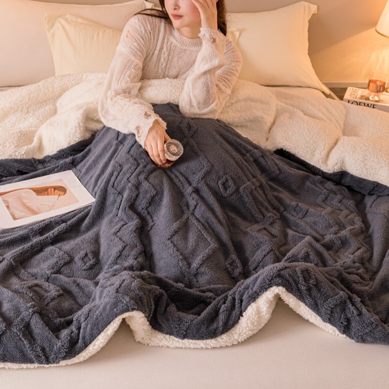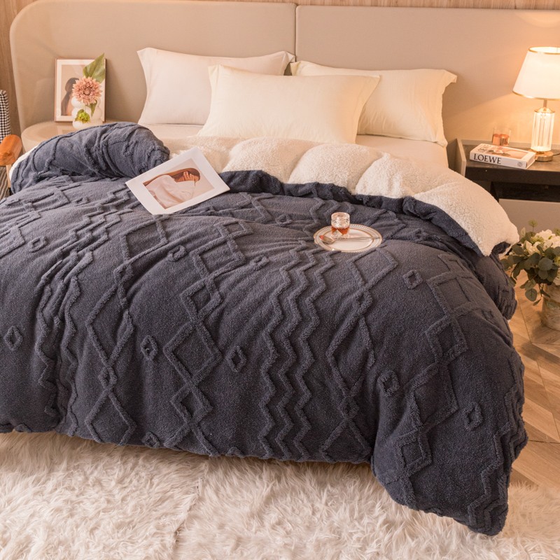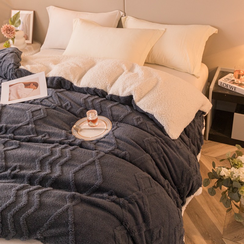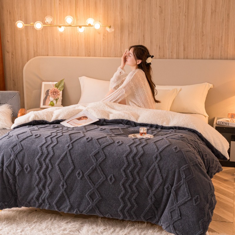 商品名称:简爱-2025舒棉绒羊羔绒单被套多功能毯 纹路菱形格-深灰