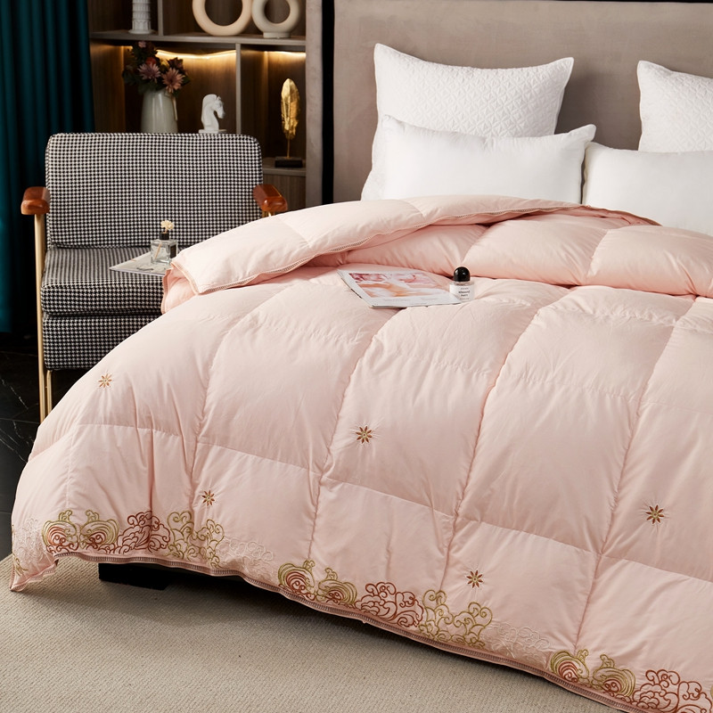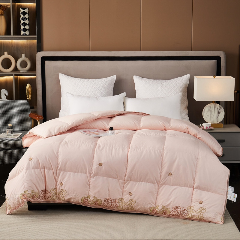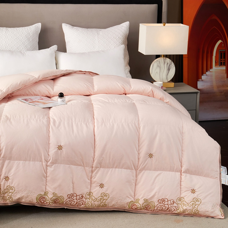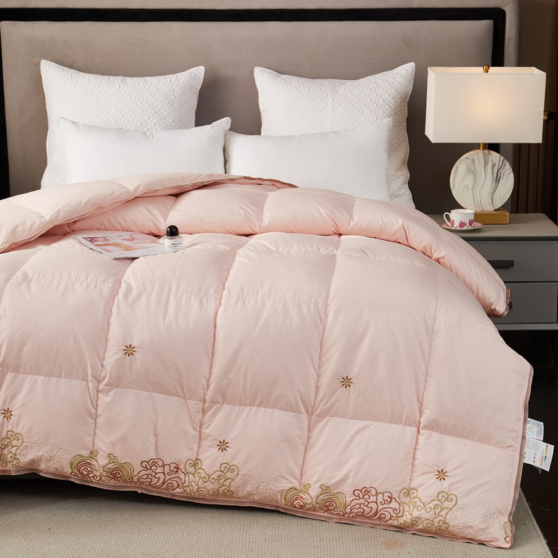 太阳羽 被95%白埃及棉绣花保暖被芯被 祥云-粉玉色