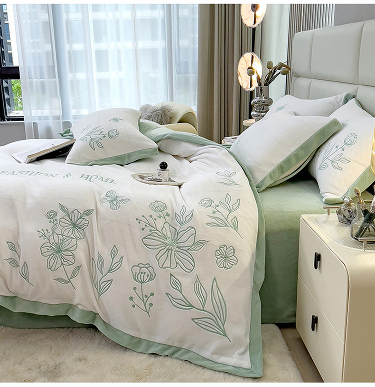 (总)澳梵家居 2022新款牛奶绒刺绣春风花藻系列四件套